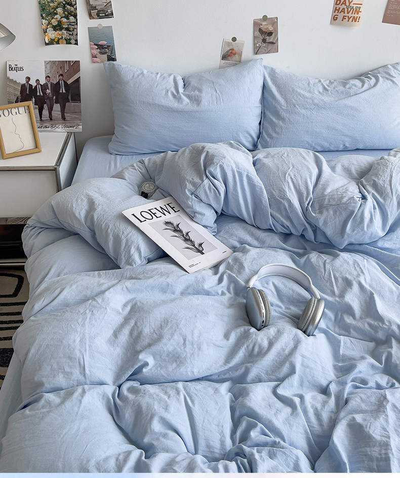 当前位置: 91家纺网 > 商品网购 > 床品套件 > 四件套 > 水洗棉四件套 > 韩巢家纺 2024新款日式ins风超柔褶皱亲肤水洗棉四件套 -纯色系列(提供卖家秀) 水洗棉浅蓝