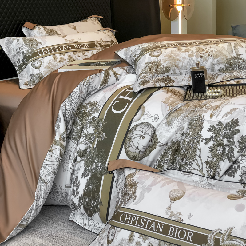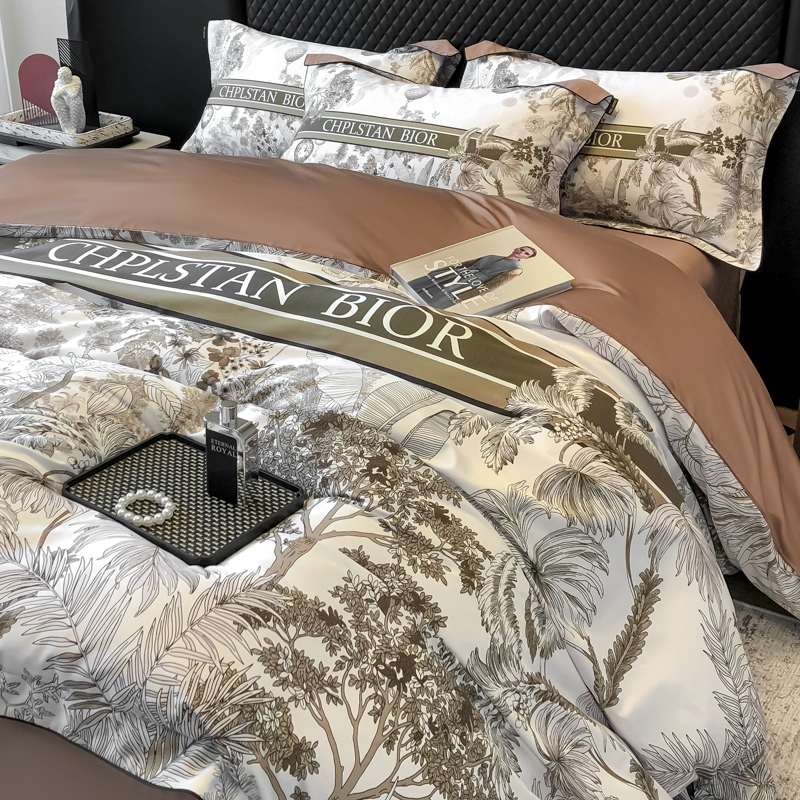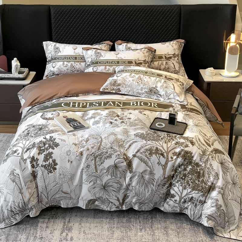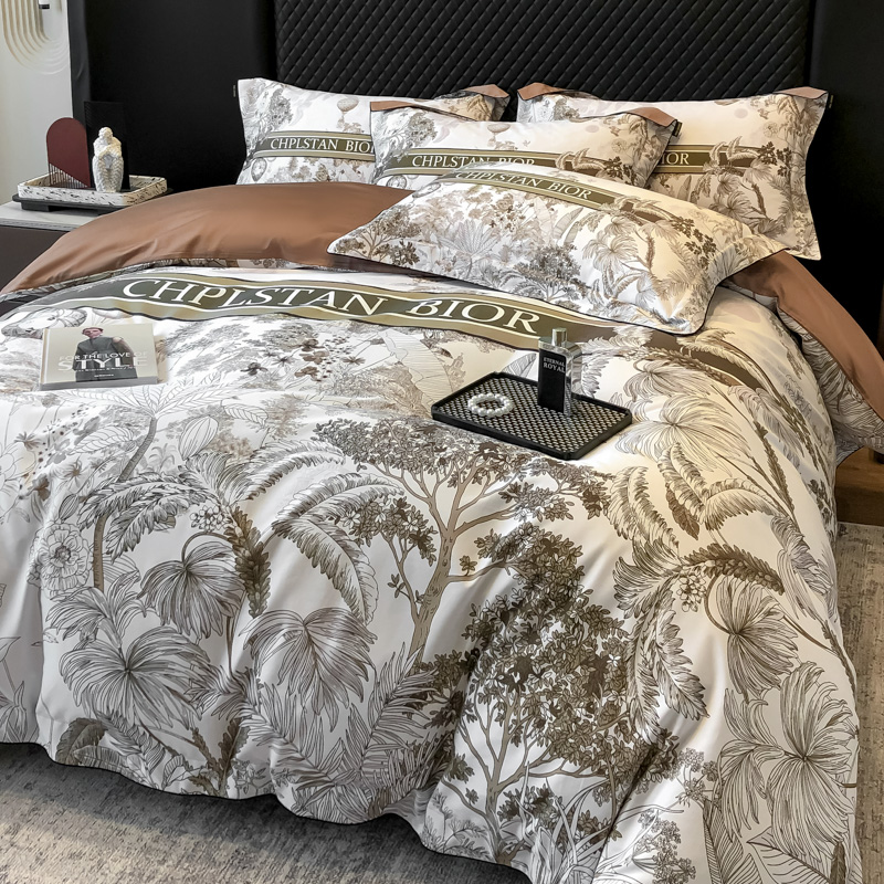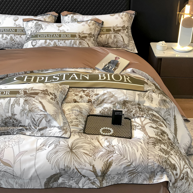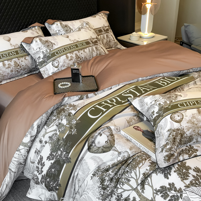 商品名称:东方名伶 2024新款50S全棉数码印花长绒棉四件套 境玉森林-咖