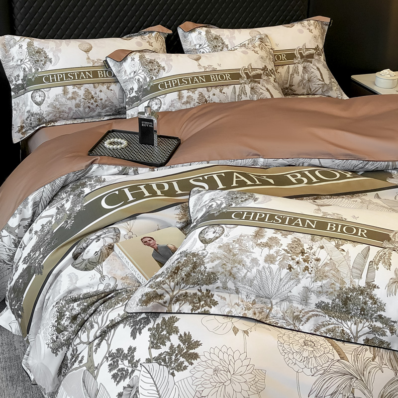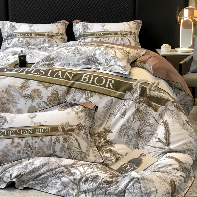 东方名伶 2024新款50S全棉数码印花长绒棉四件套 境玉森林-咖
