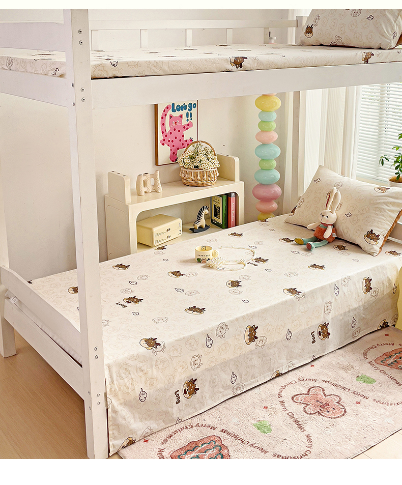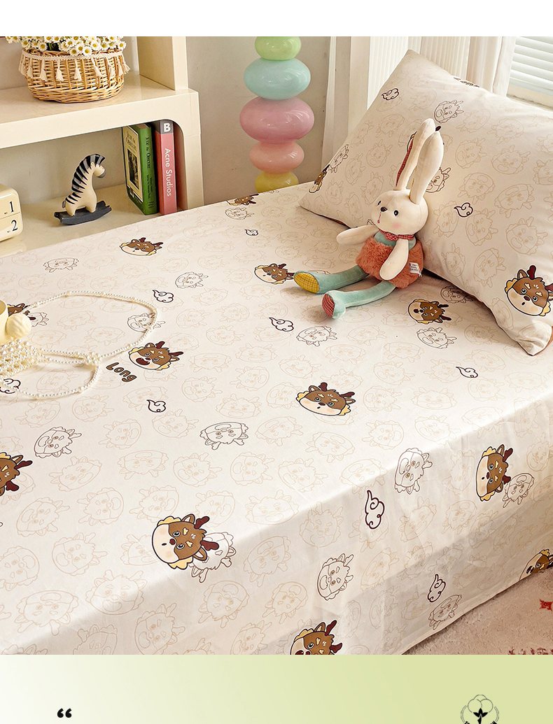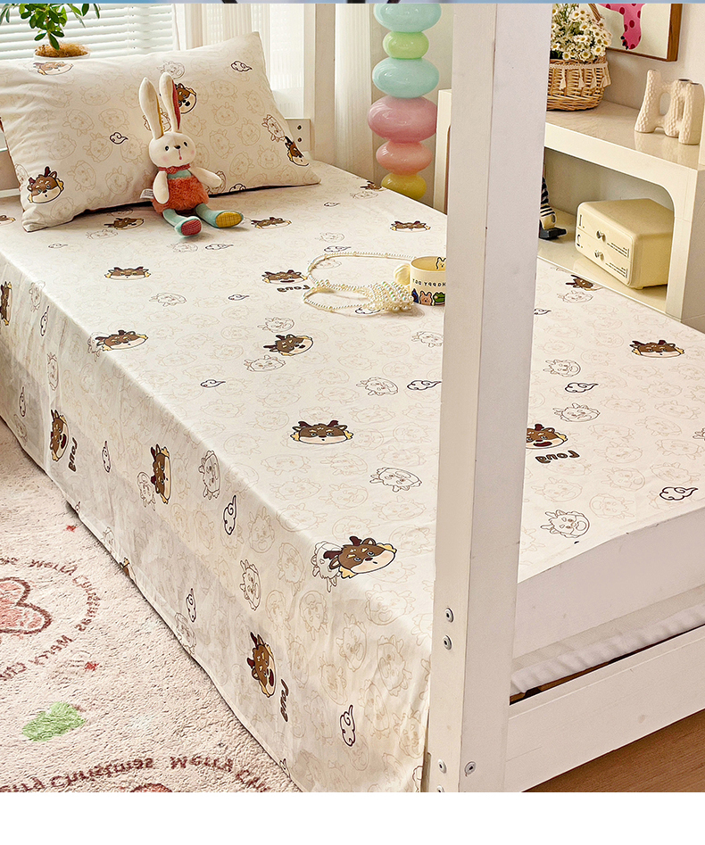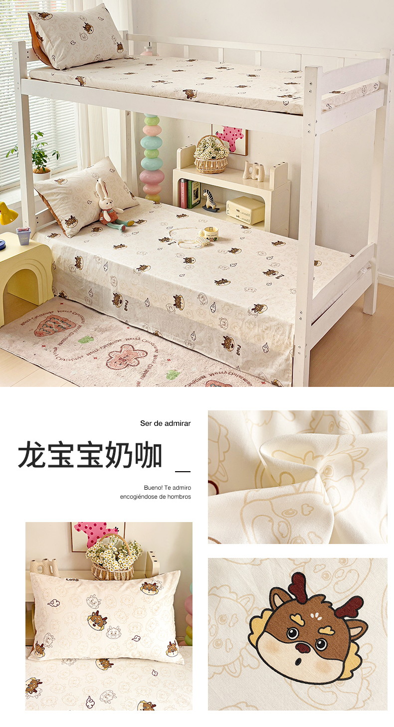 • 91家纺网 家纺一手货源 找家纺 名兮家居 2024新款学生床上下铺全棉床单  龙宝宝奶咖