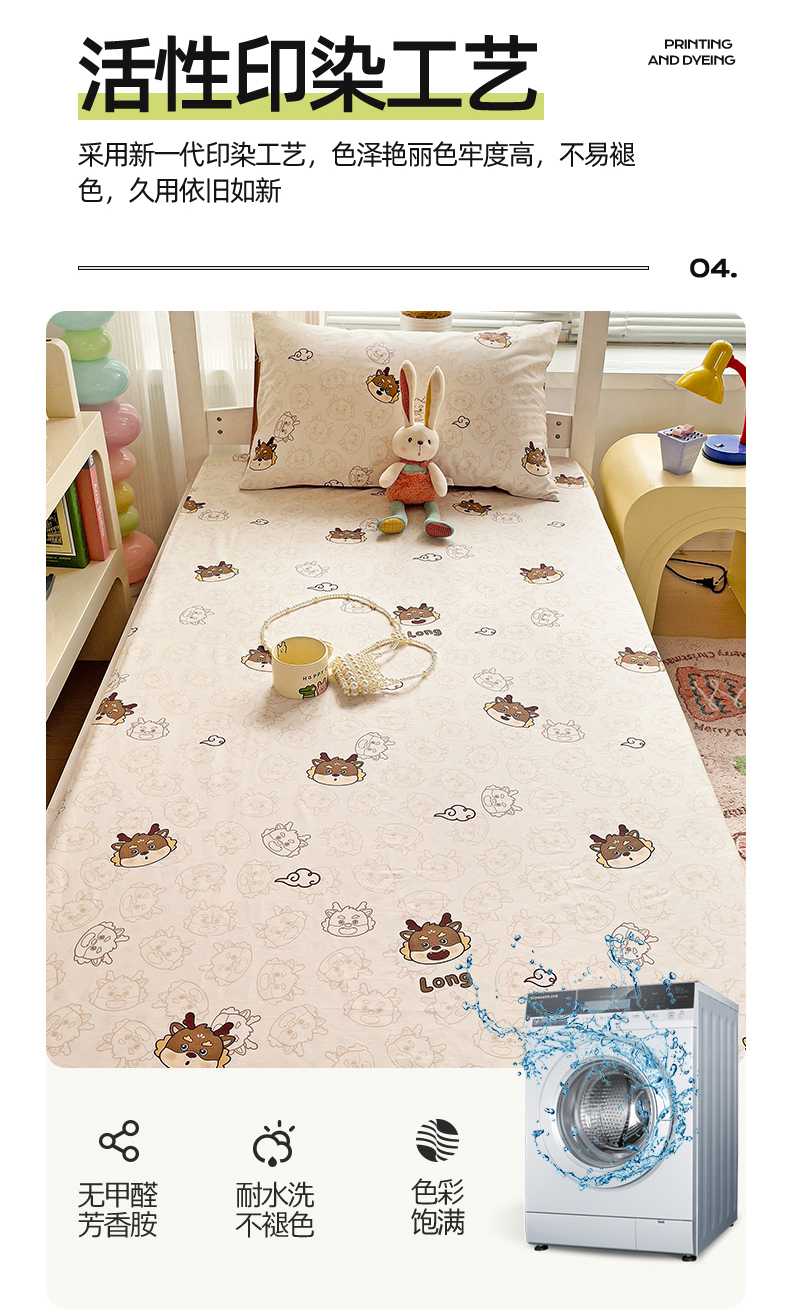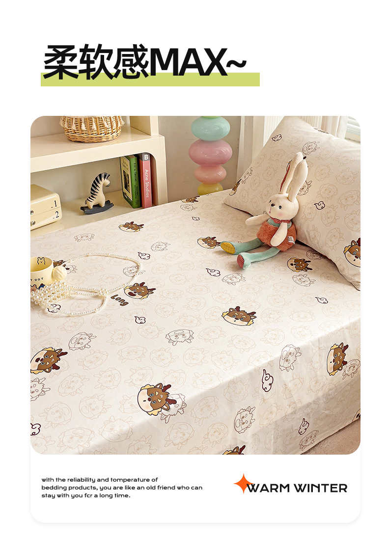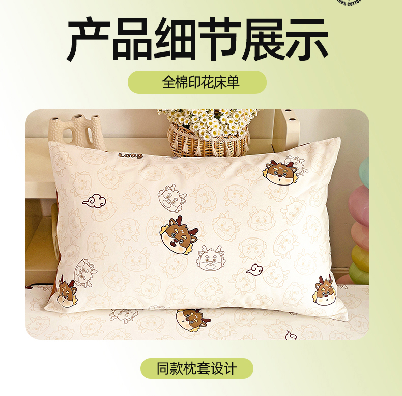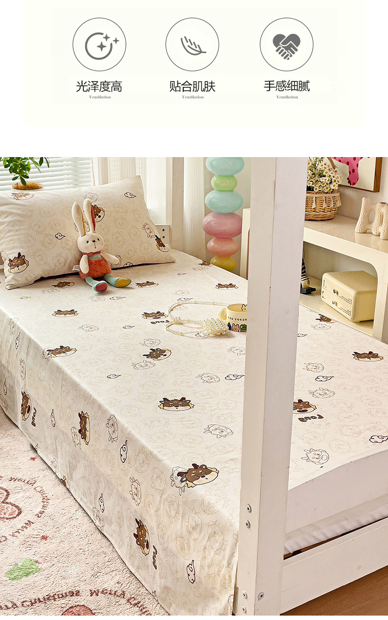 • 91家纺网 家纺一手货源 找家纺 名兮家居 2024新款学生床上下铺全棉床单  龙宝宝奶咖