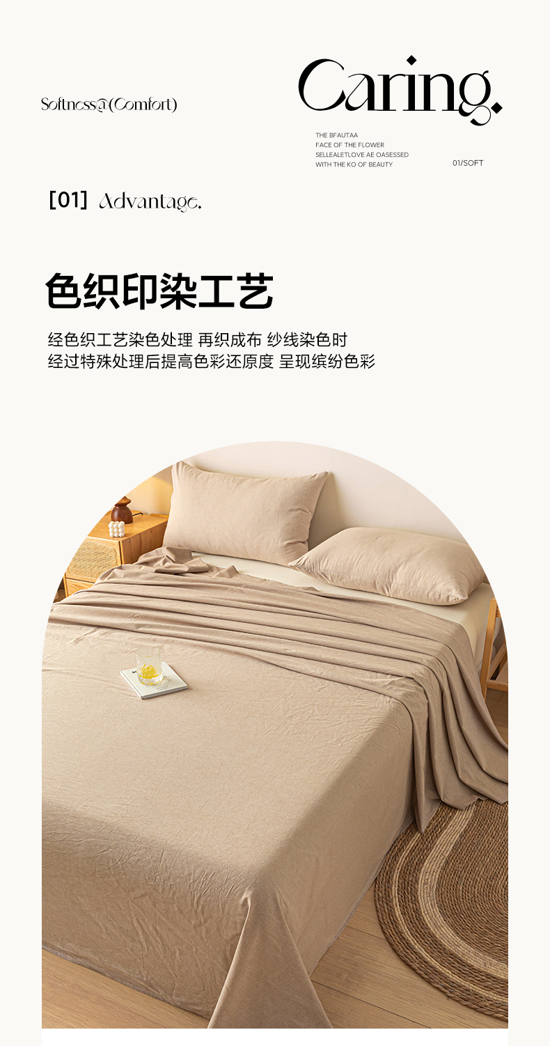 商品名称:卡伦家纺 2025新款全棉色织水洗棉床单学生宿舍单人双人床单系列咖青年