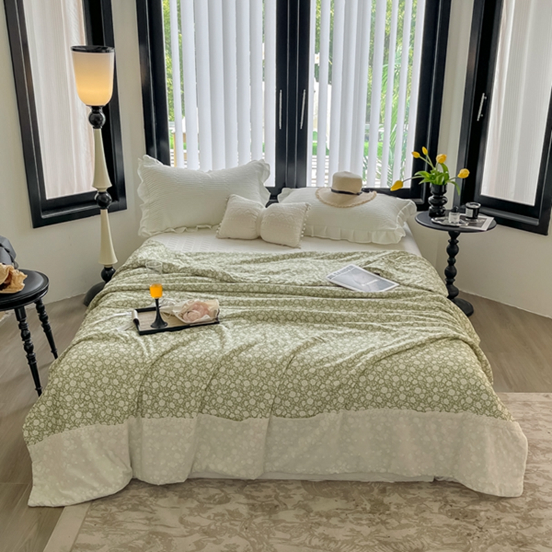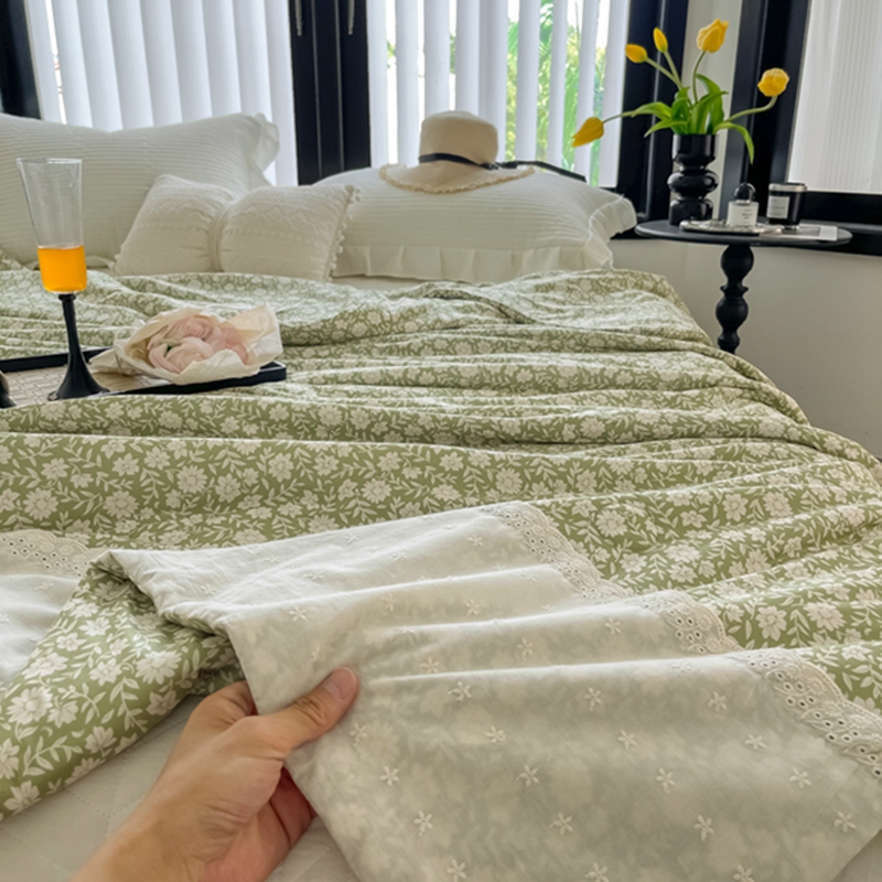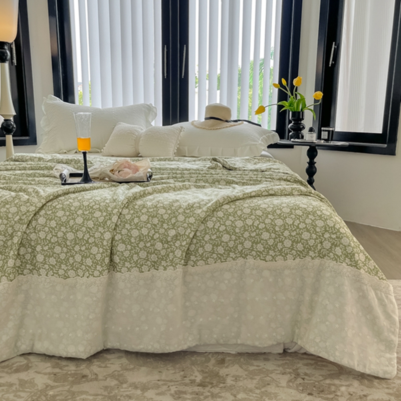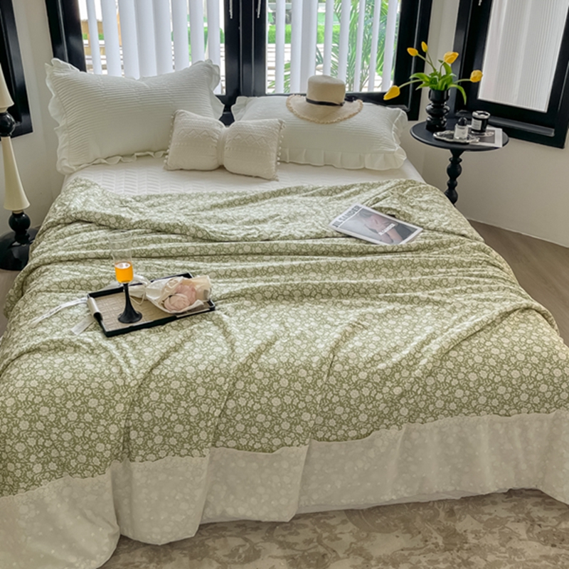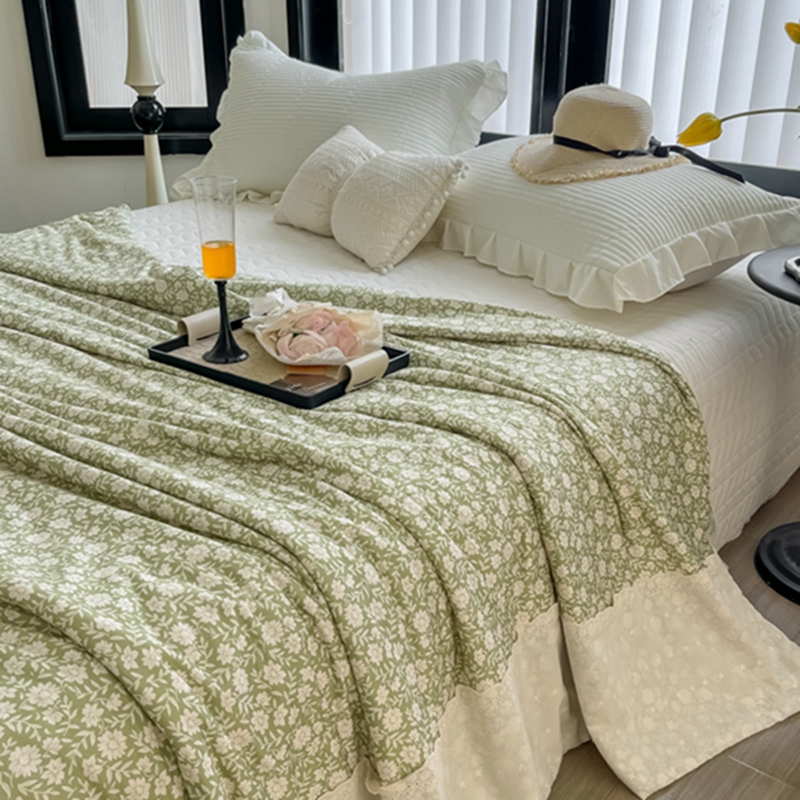 莱豫家纺 2024新款法式复古针织花边夏被春秋被 清雅绿