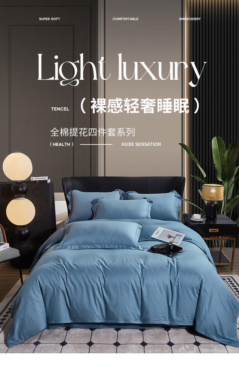 (总)雲归梦 2024新款全棉提花活性高支密轻奢四件套