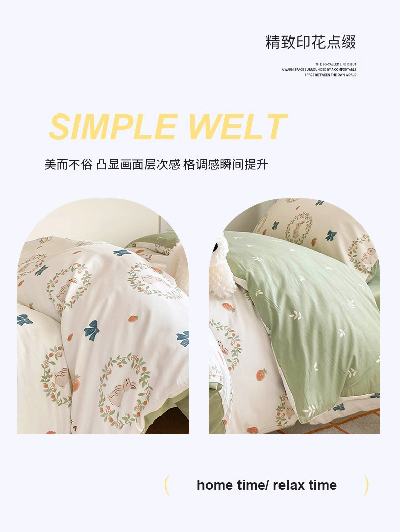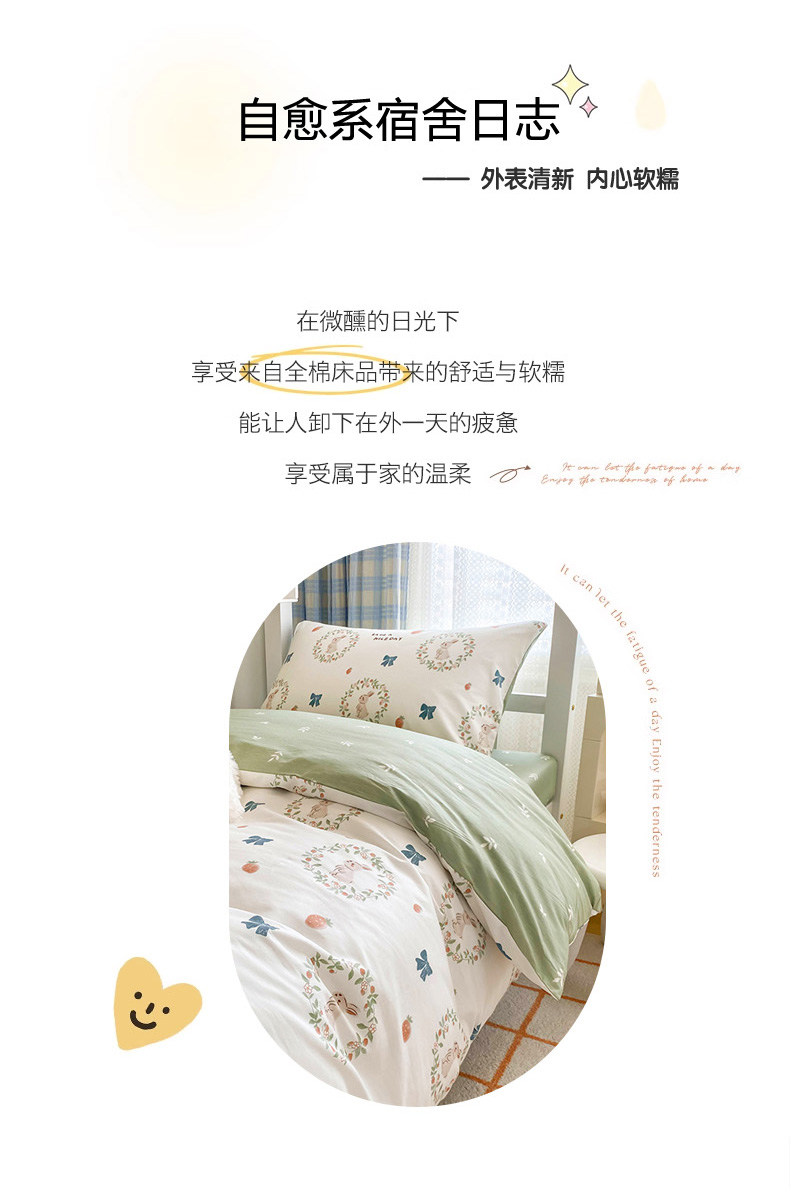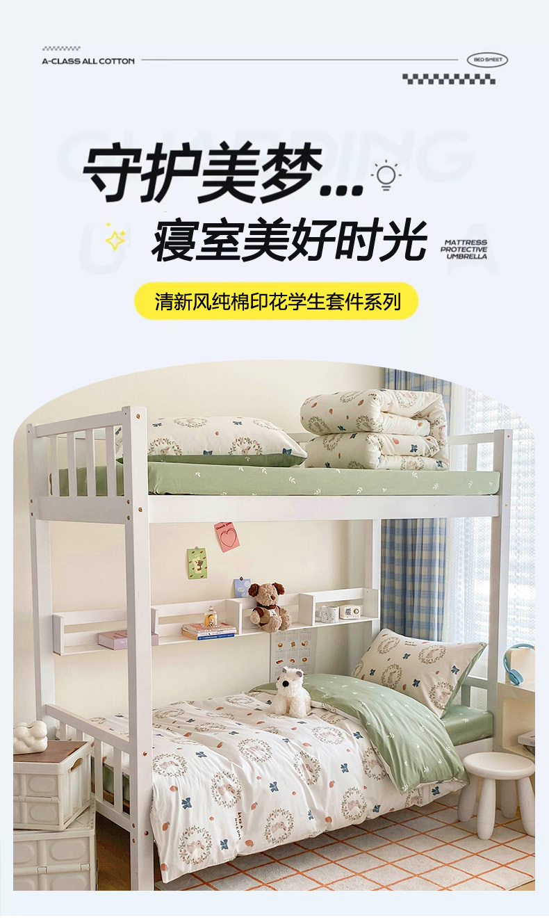 倾慕家纺 2024新款清新风纯棉印花学生套件系列 精灵乐园
