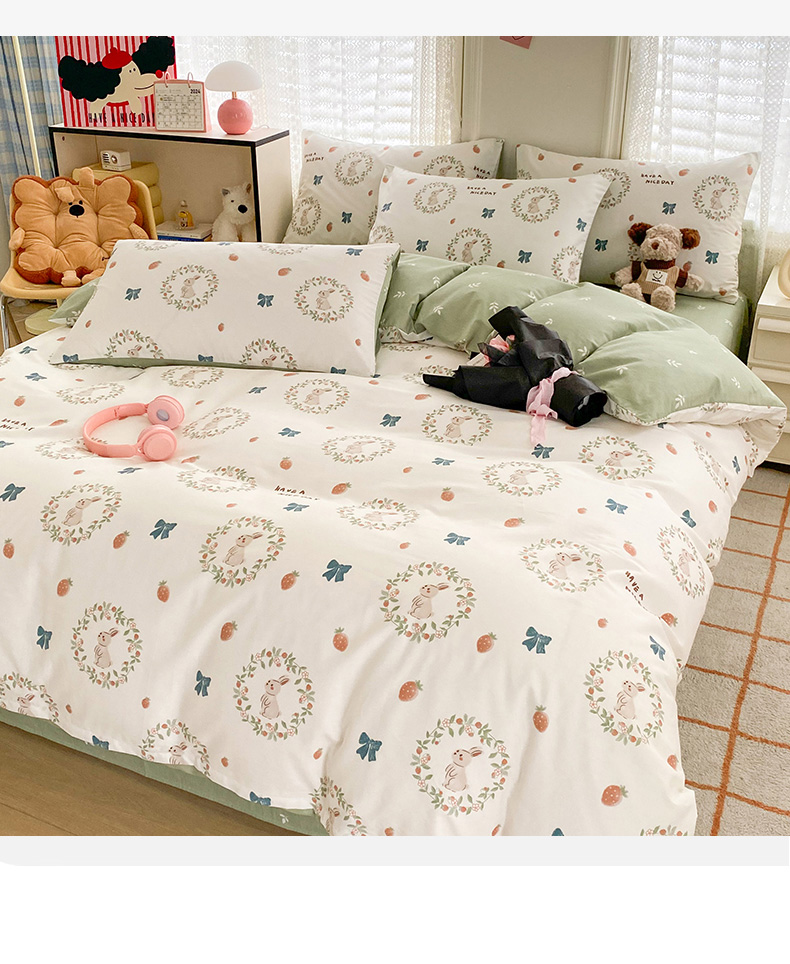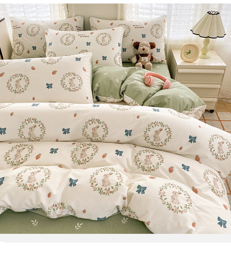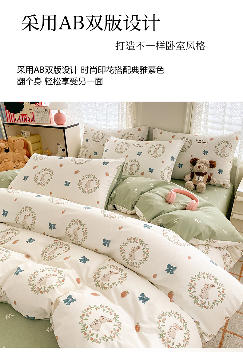 商品名称:倾慕家纺 2024新款ins清新风纯棉印花四件套系列 精灵乐园