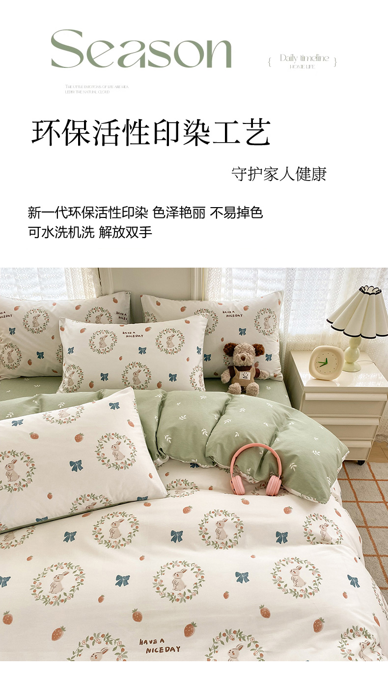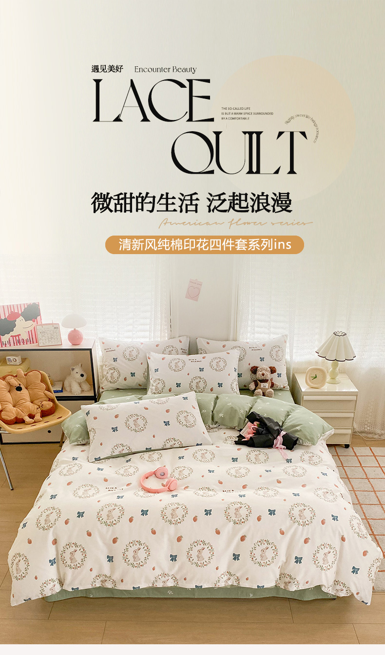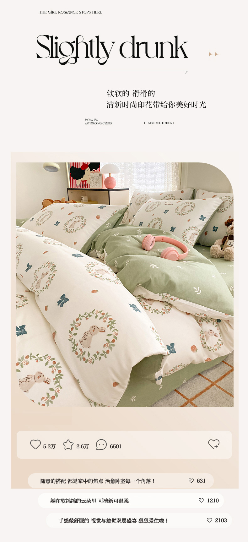 倾慕家纺 2024新款ins清新风纯棉印花四件套系列 精灵乐园