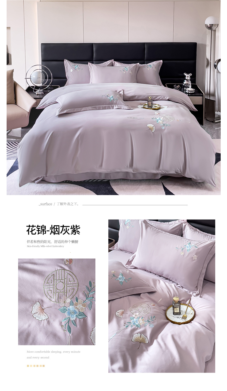 金米诺 2024新款磨毛四件套刺绣系列 烟灰紫