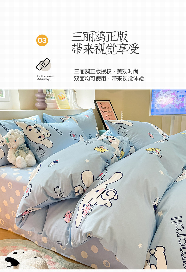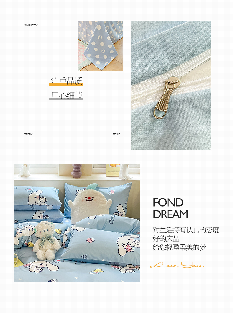 当前位置: 91家纺网 > 商品网购 > 床品套件 > 四件套 > 全棉普通四件套 > 桃子家居 2024新款三丽鸥正版授权卡通纯棉印花系列四件套 棉三丽鸥-牛奶玉桂狗