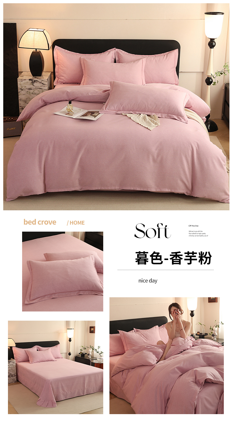 当前位置: 91家纺网 > 商品网购 > 床品套件 > 四件套 > 磨毛活性四件套 > 巧玲珑 2024新款新疆棉亲肤四件套 暮色-香芋粉