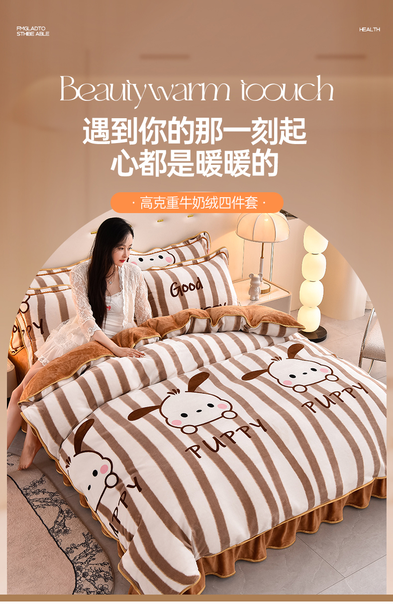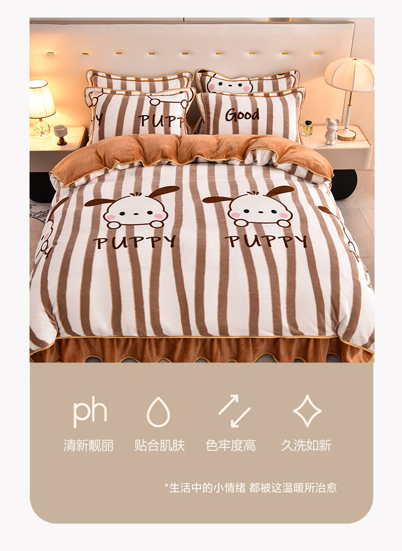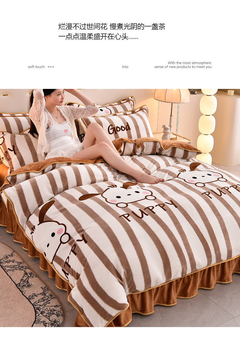 当前位置: 91家纺网 > 商品网购 > 床品套件 > 四件套 > 牛奶绒四件套 > 德比尔斯 2025新款牛奶绒床裙四件套8-9斤法莱绒直播爆款日产2万套凯利