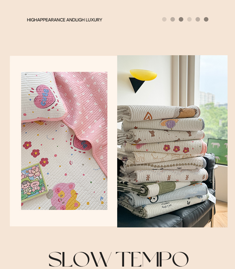 • 91家纺网 家纺一手货源 找家纺 茉夕家纺 2024新款双面全棉夹棉床盖系列 花花酱