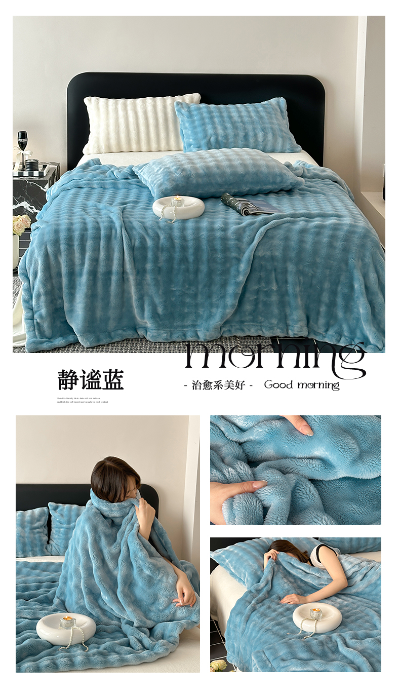 商品名称:桃喜 2024新款A类亲肤舒适秋冬兔毛毛毯 静谧蓝