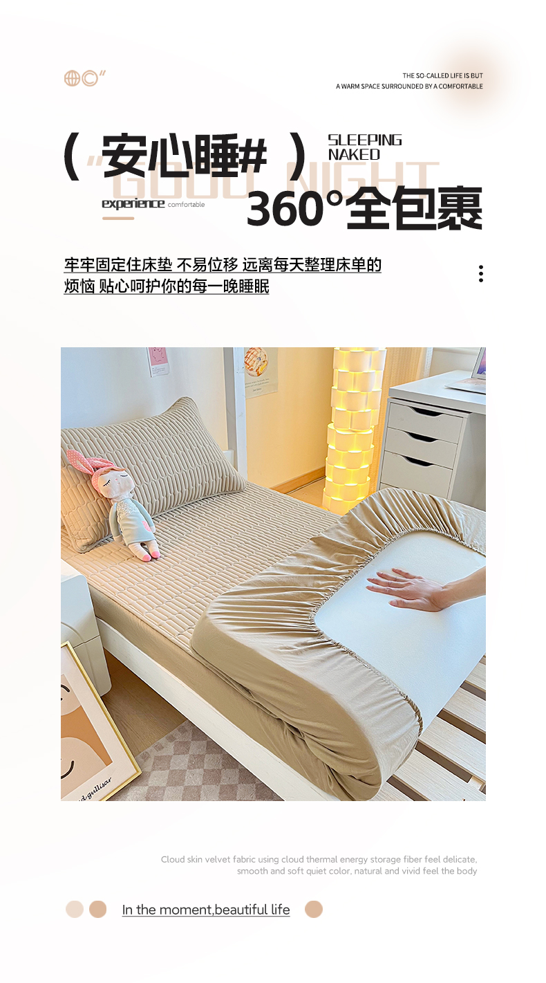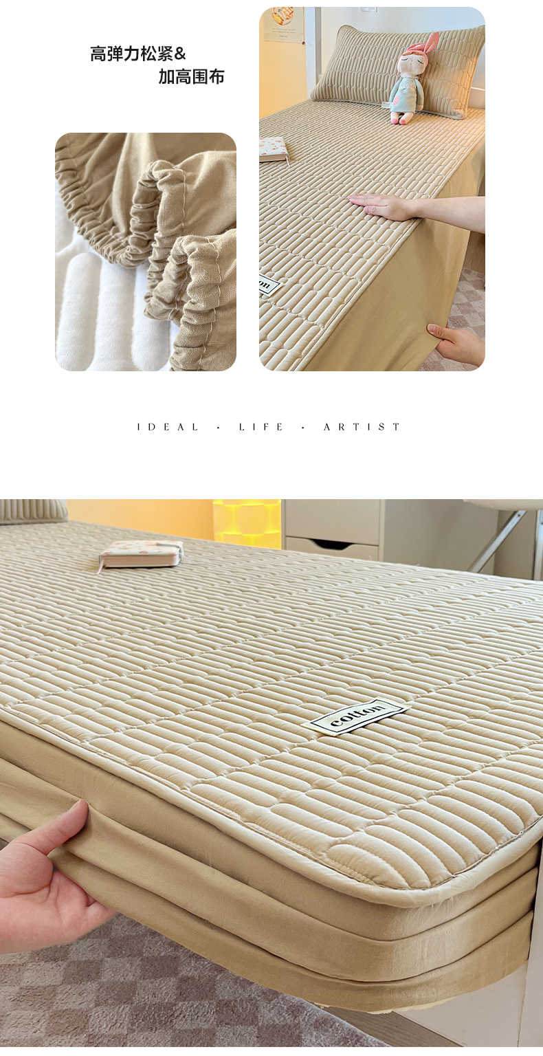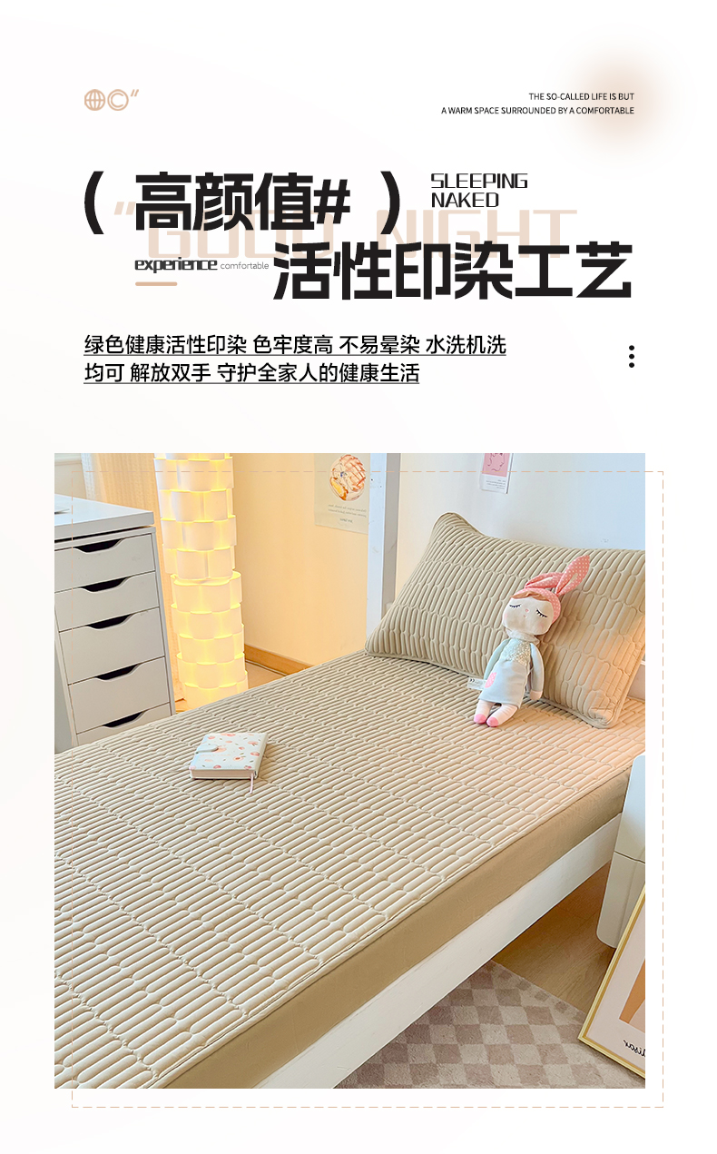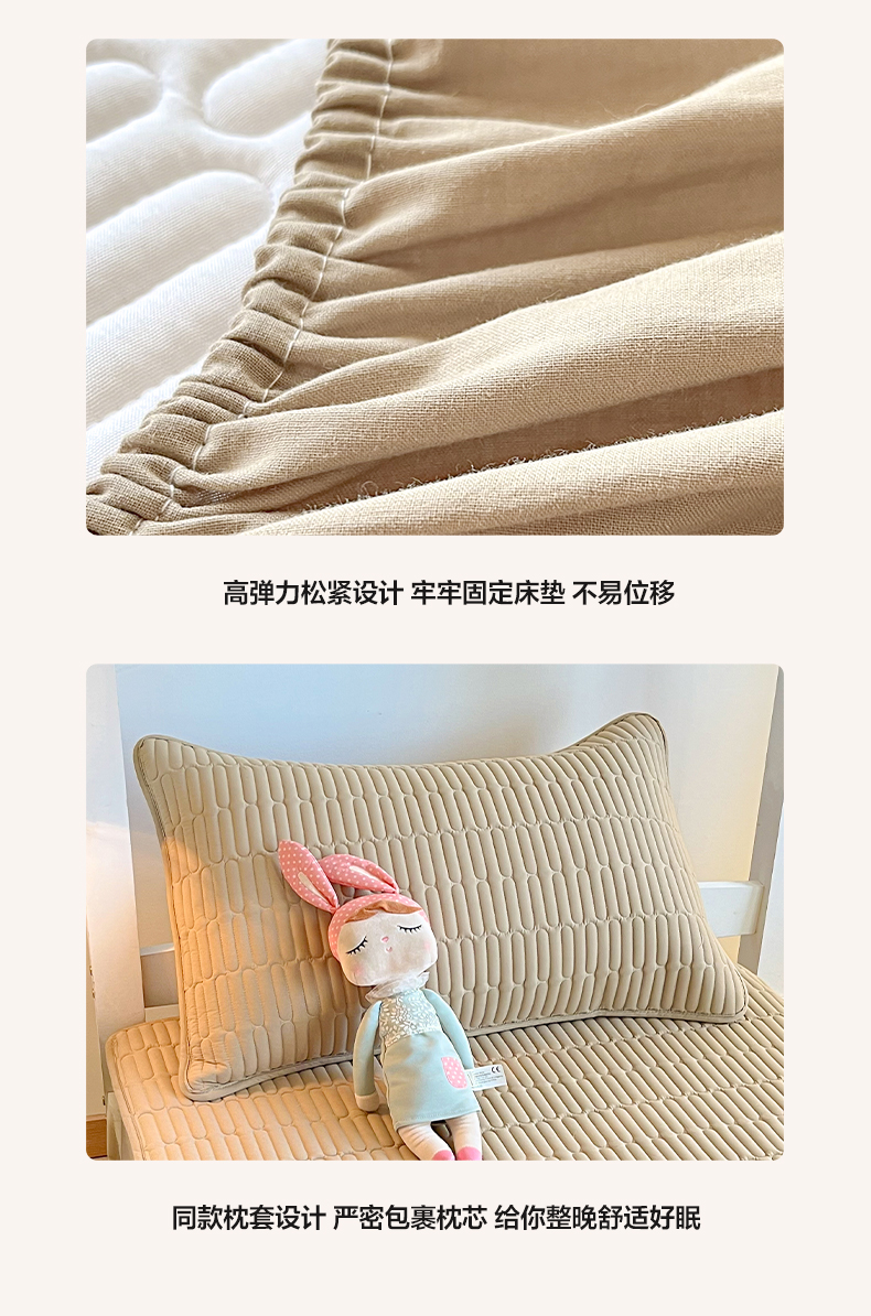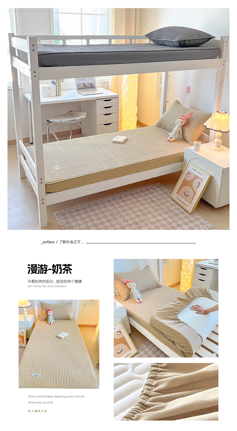 • 91家纺网 家纺一手货源 找家纺 芬晴家纺 2024新款A类全棉水洗棉大豆棉床笠-漫游(学生床) 漫游-奶茶