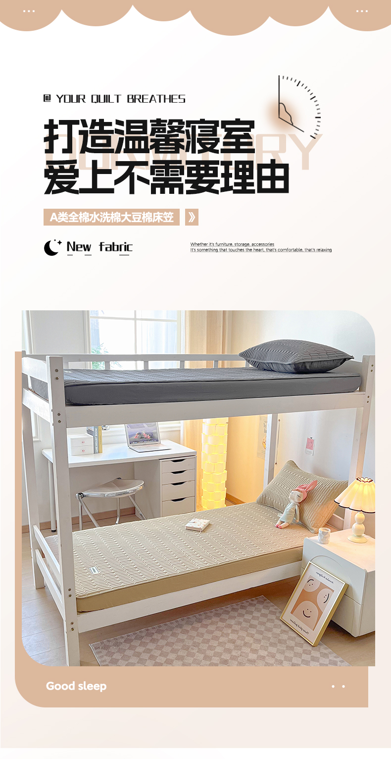 当前位置: 91家纺网 > 商品网购 > 床上用品 > 床笠 > 芬晴家纺 2024新款A类全棉水洗棉大豆棉床笠-漫游(学生床) 漫游-奶茶
