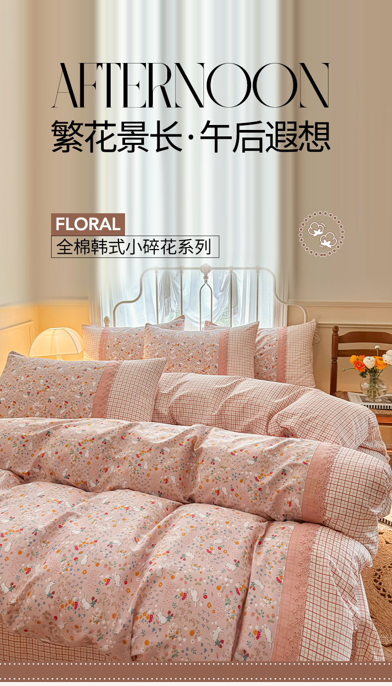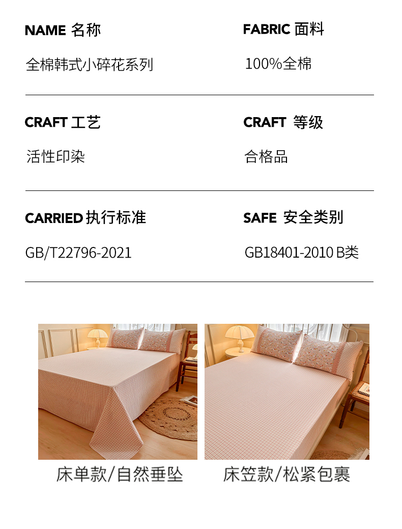 商品名称:安莱生活 2024新款全棉韩式小碎花系列四件套 玛丽娜