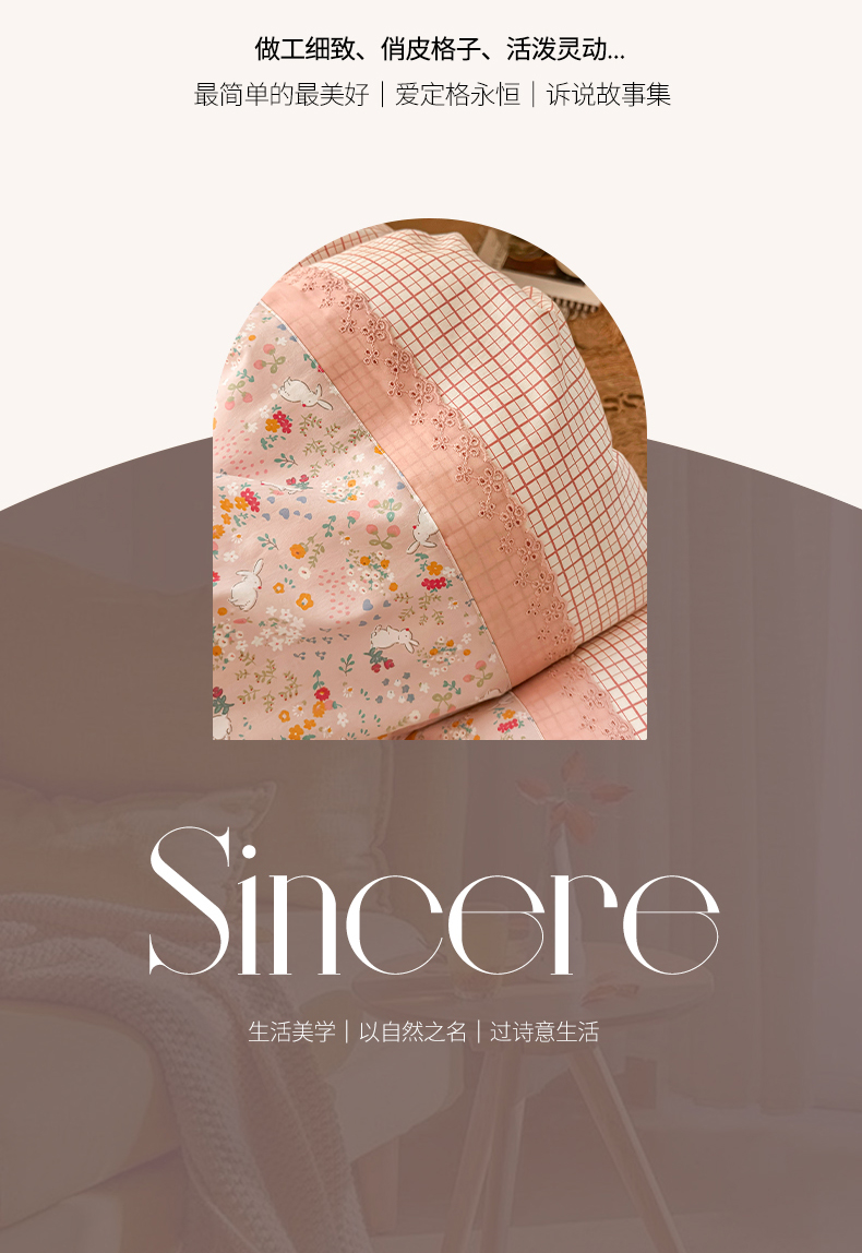 (总)安莱生活 2026年新品全棉纯棉小碎花刺绣花边款四件套-小碎花系列,花漾粉,花梦紫,凯特花园,漫语花,泡芙花园