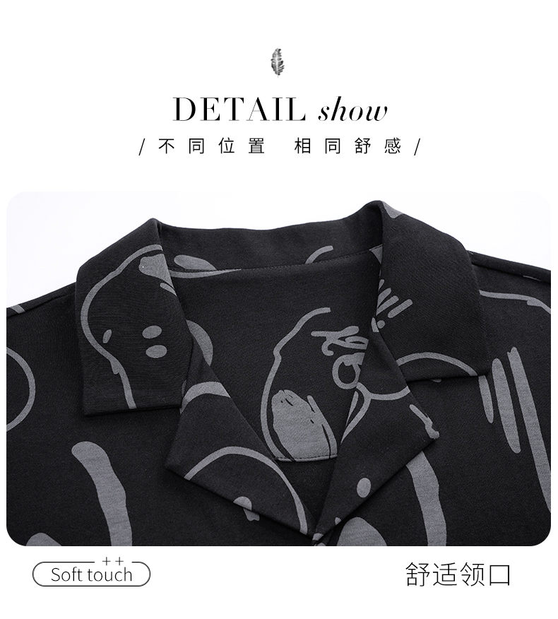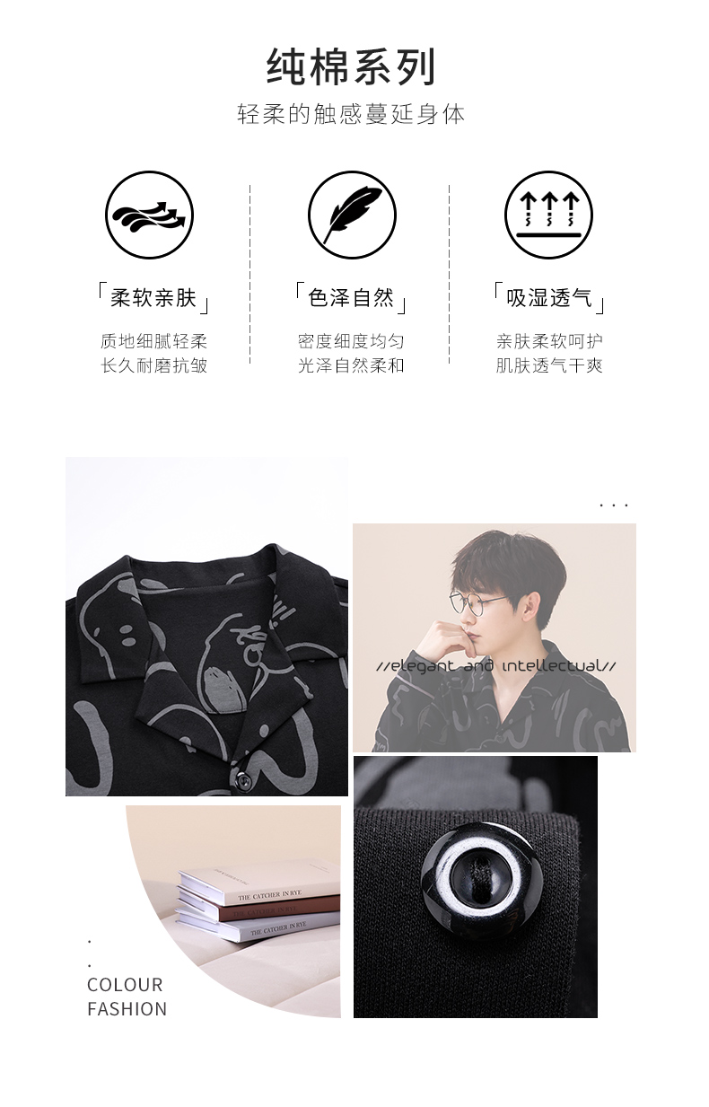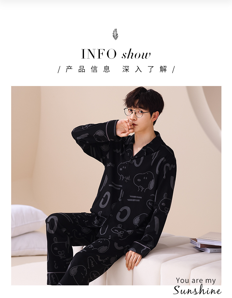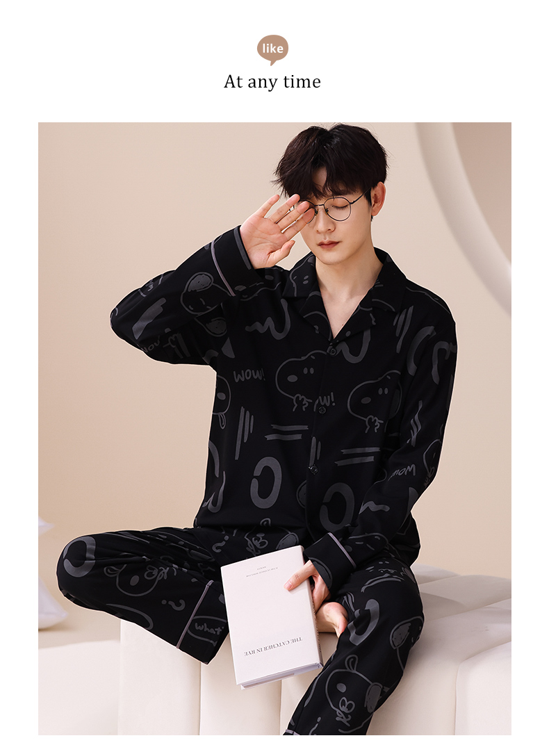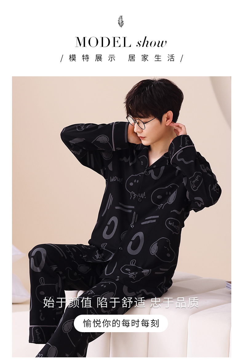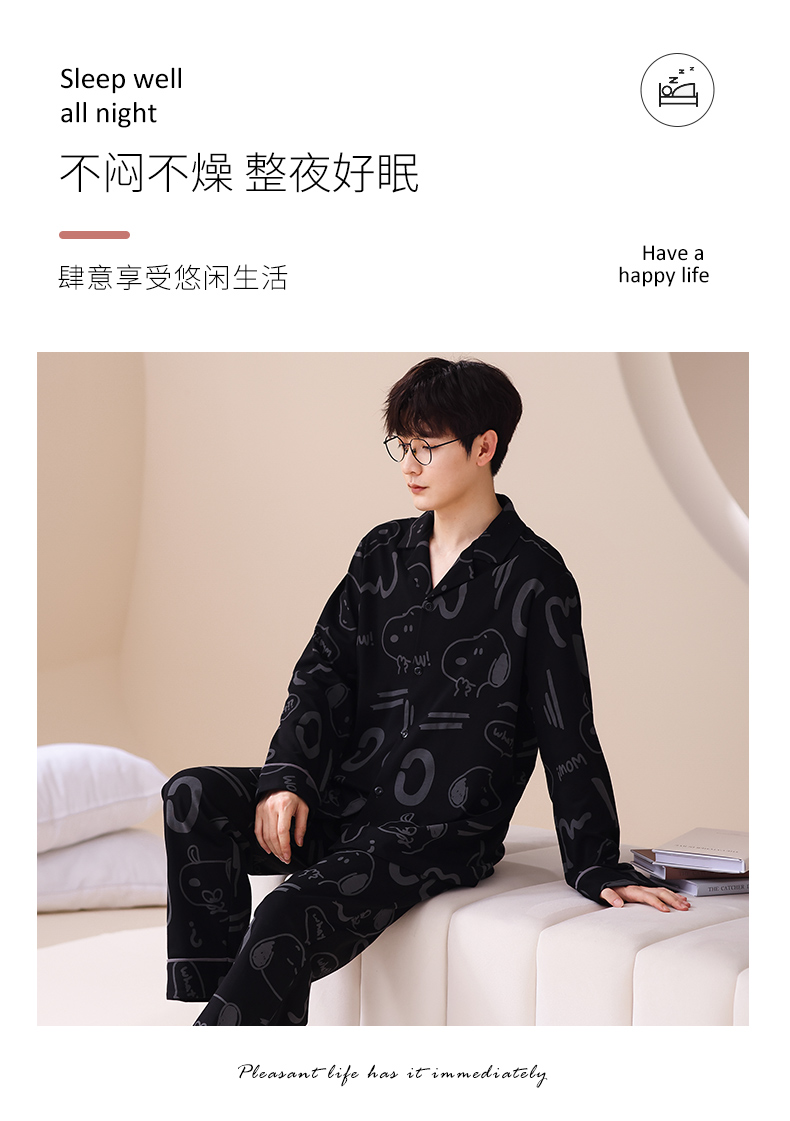 春秋季新款纯棉休闲简约睡衣高级质量家居服夏季男士宽松舒适睡衣翻领 667男