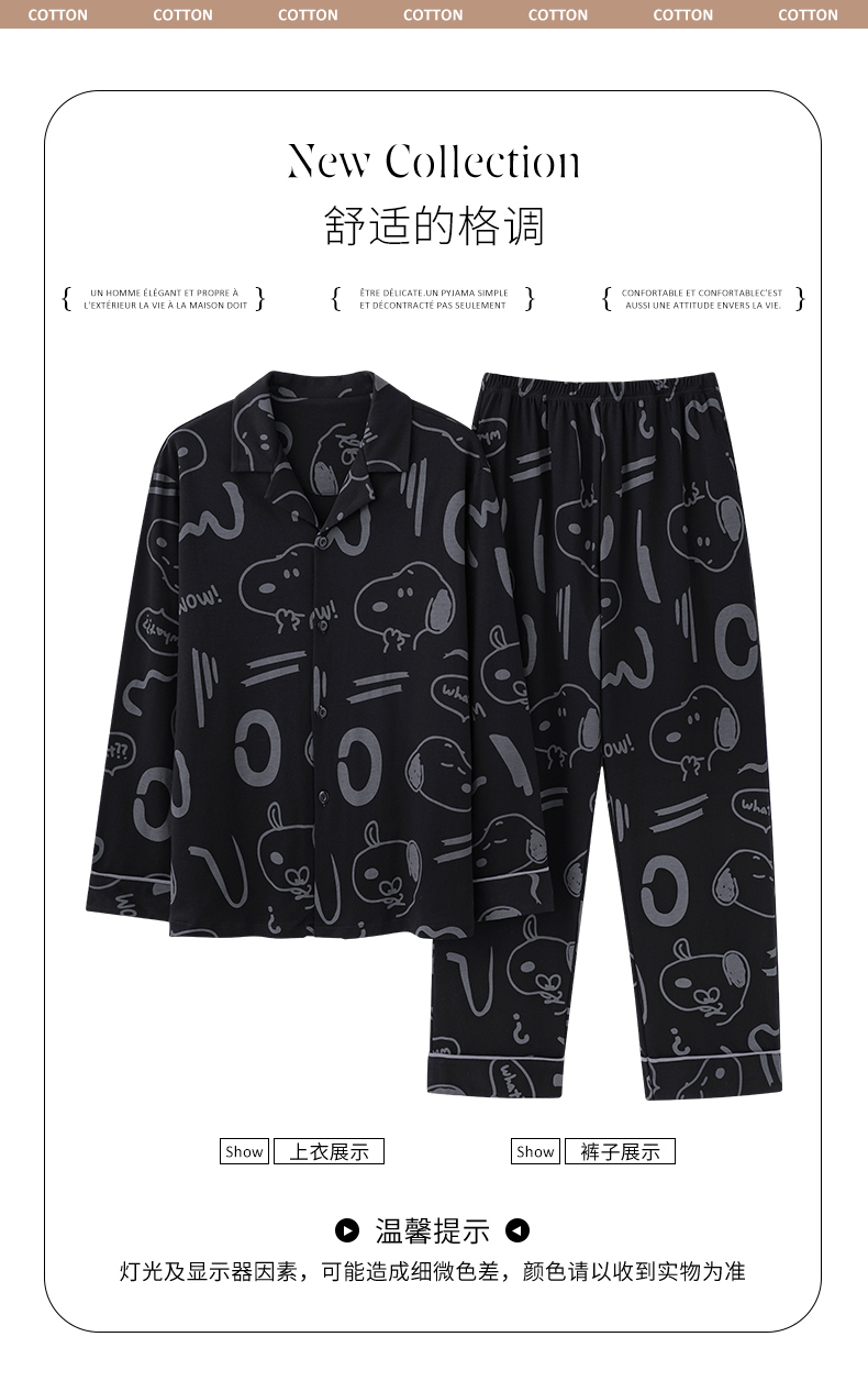 商品名称:春秋季新款纯棉休闲简约睡衣高级质量家居服夏季男士宽松舒适睡衣翻领 667男