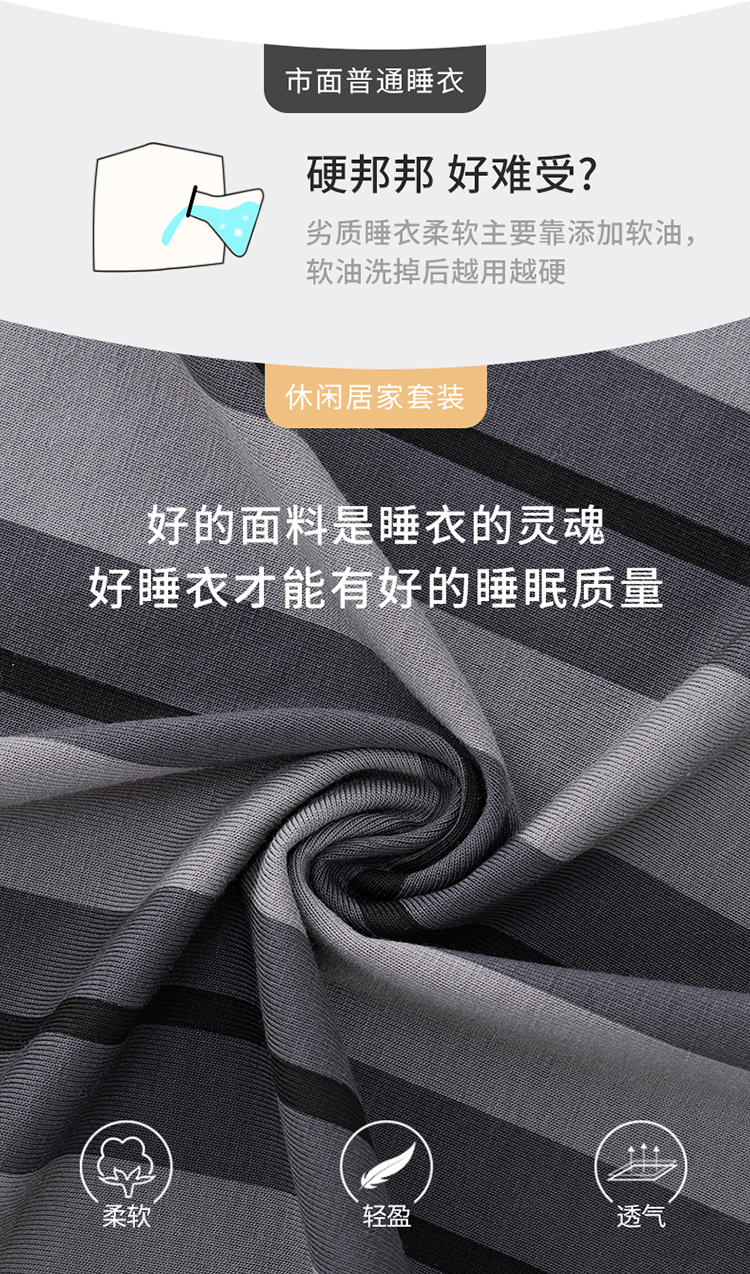 商品名称:春秋季新款纯棉休闲简约睡衣高级质量家居服夏季男士宽松舒适睡衣翻领 89314
