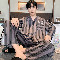 (总)洛兰沙家居馆 2025新款温澜男士纯棉双层色织棉纱家居服睡衣圆领简约格子透气长袖长裤套,温澜圆领男士长袖长裤套装-灰格