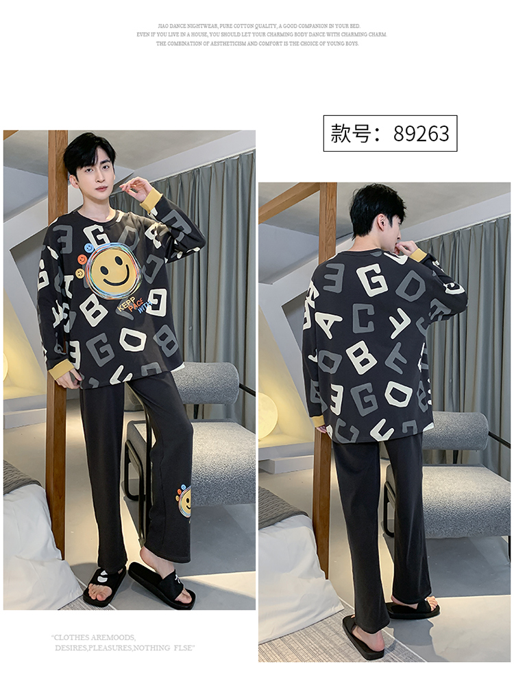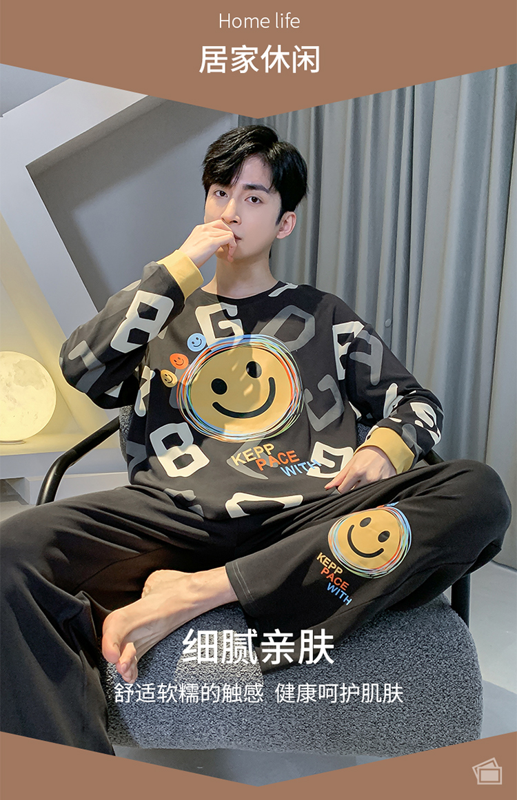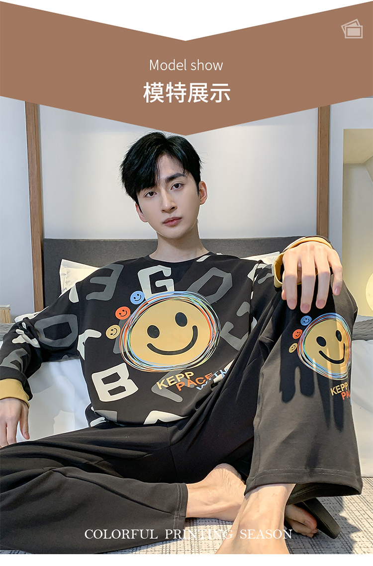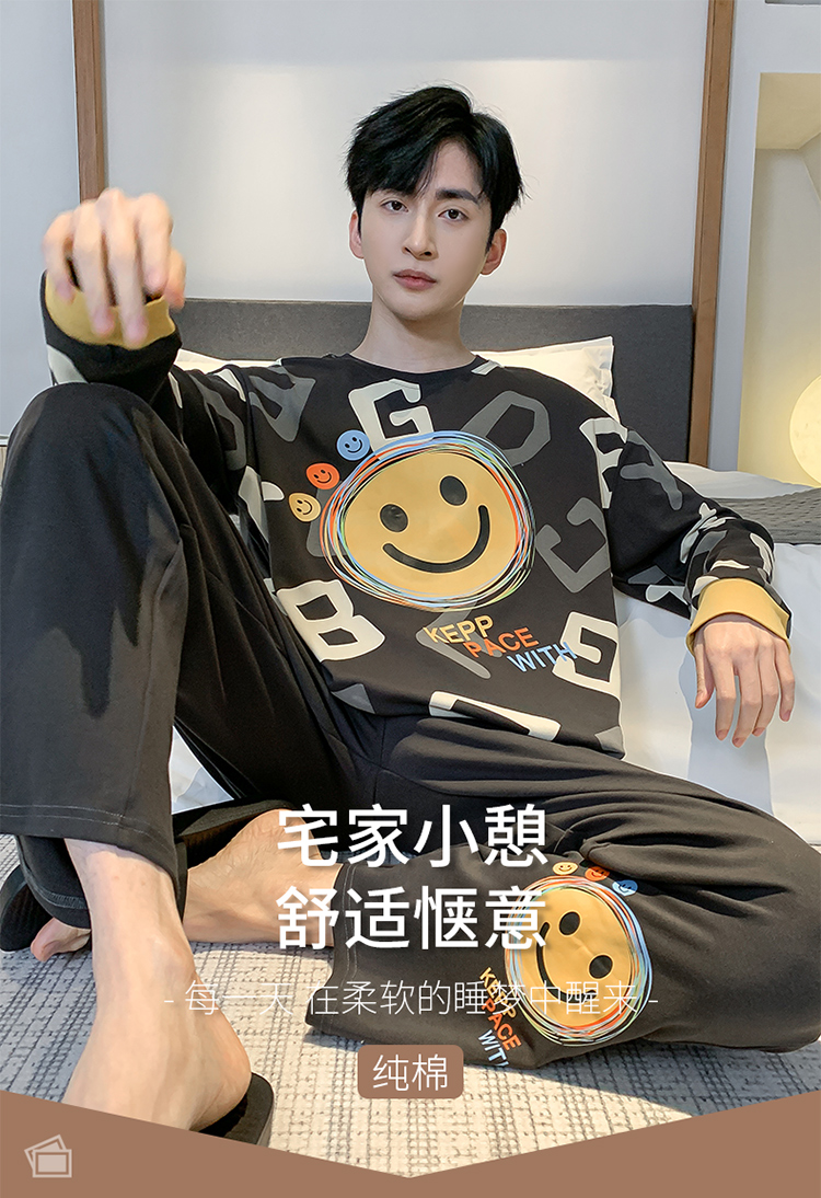 春秋季纯棉圆领睡衣男士卡通长袖家居服夏季青少年休闲可外穿套装 89263
