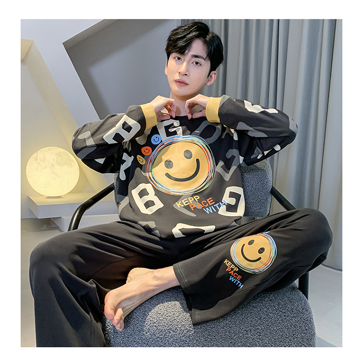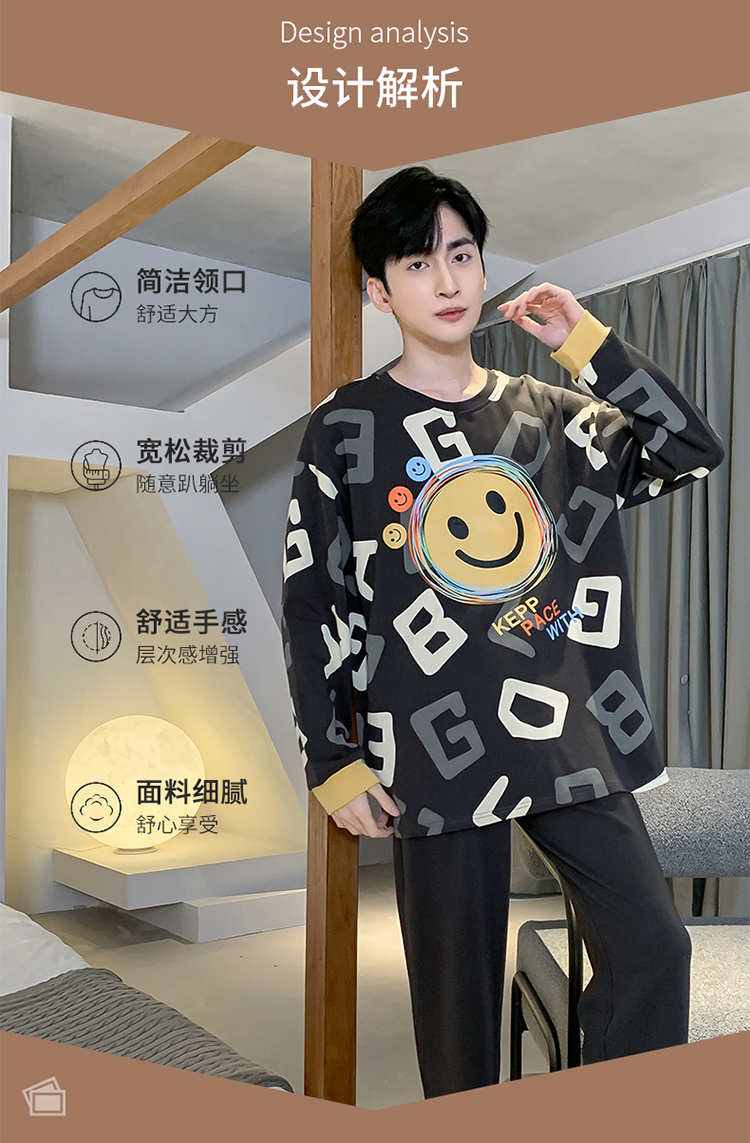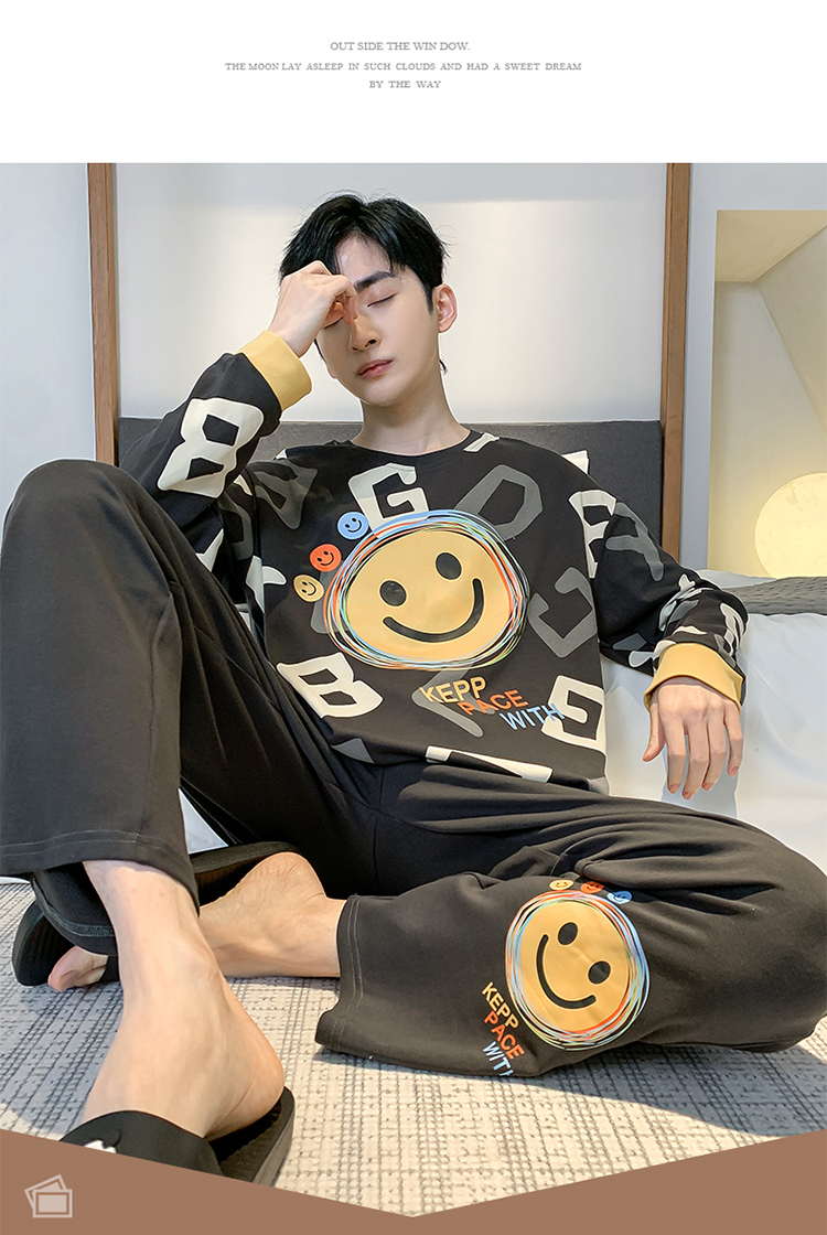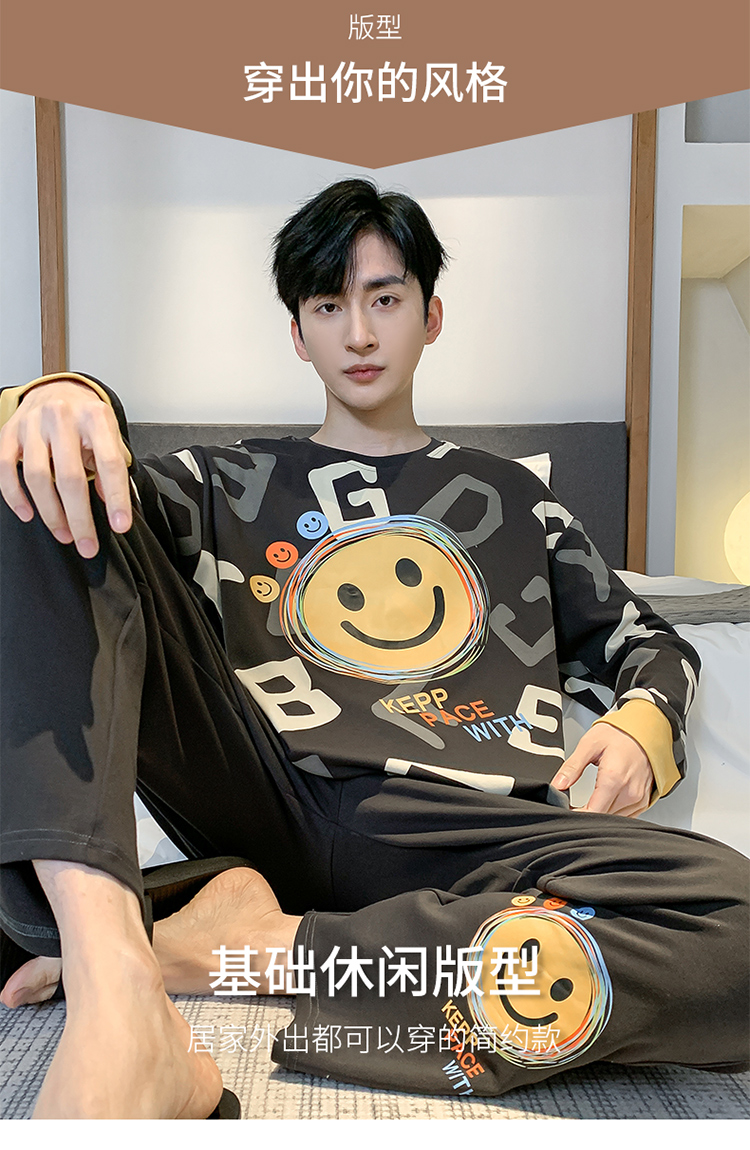 春秋季纯棉圆领睡衣男士卡通长袖家居服夏季青少年休闲可外穿套装 89263