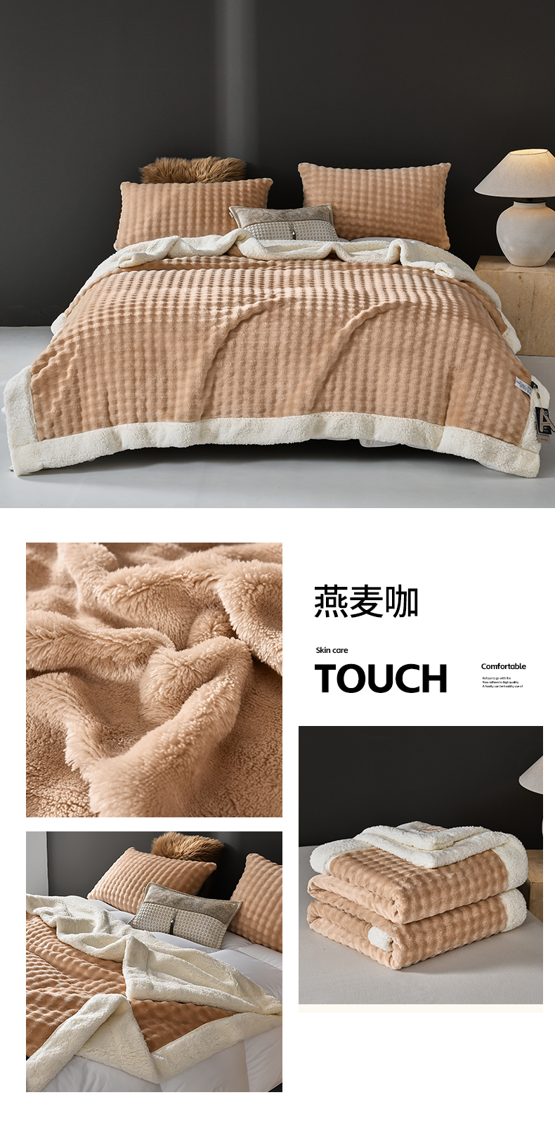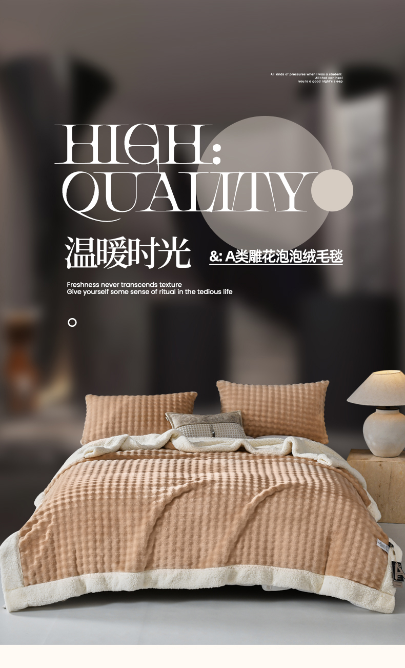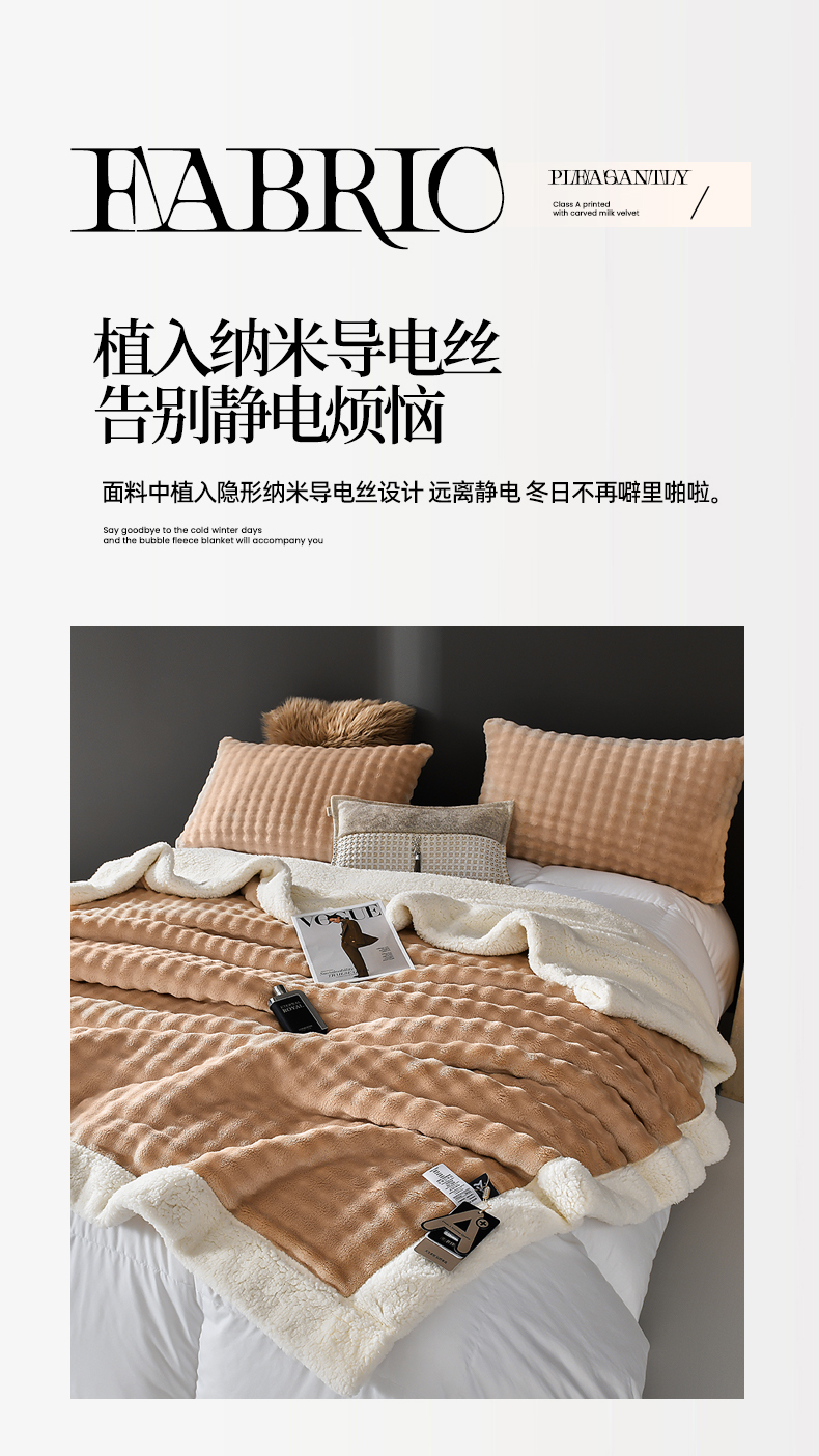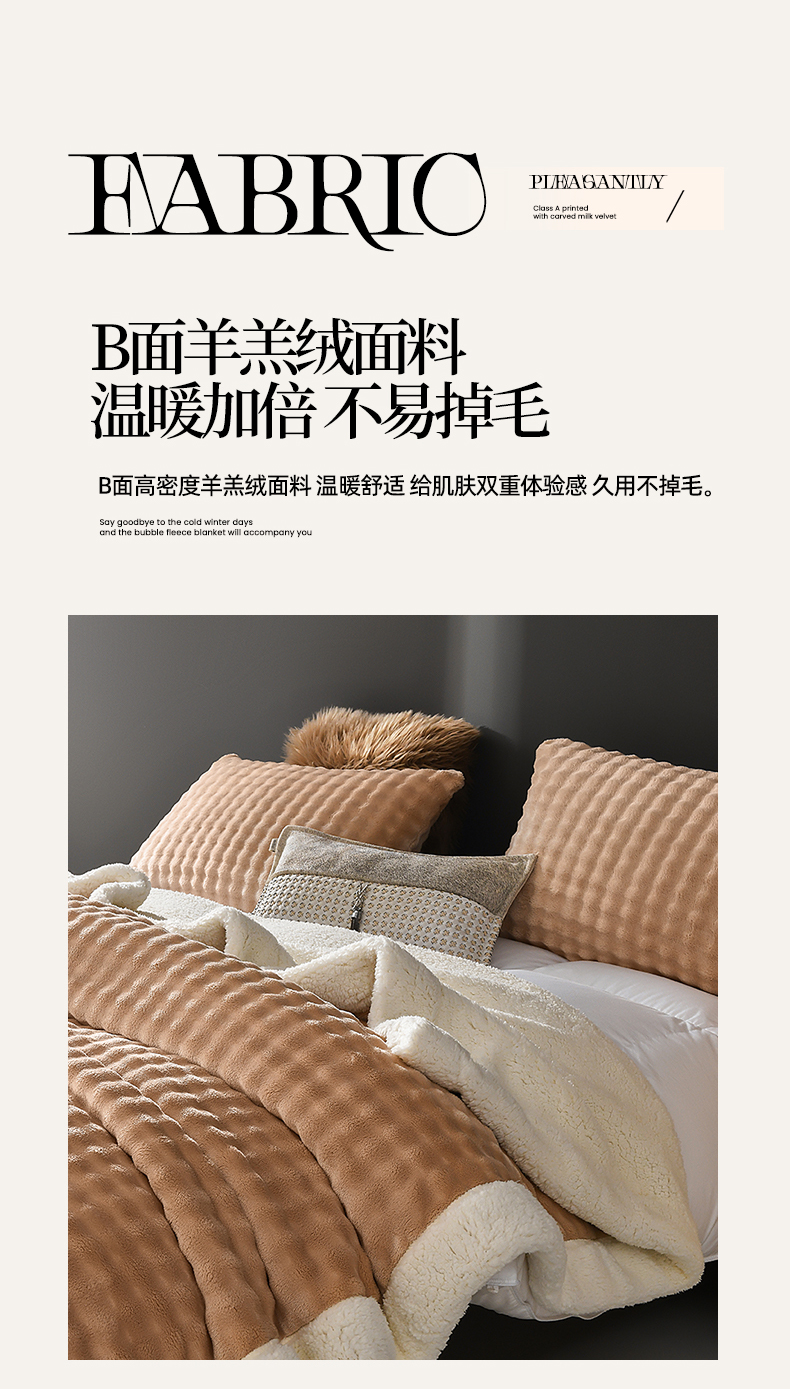 网客家纺 2024新款雕花绒泡泡绒羊羔绒毛毯 燕麦咖