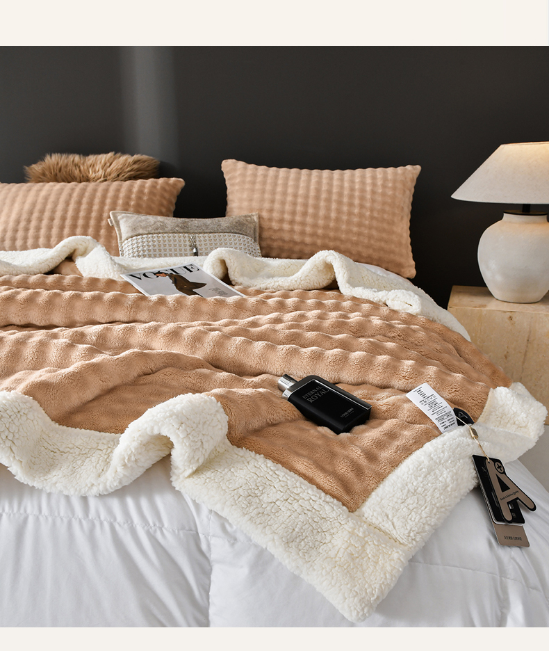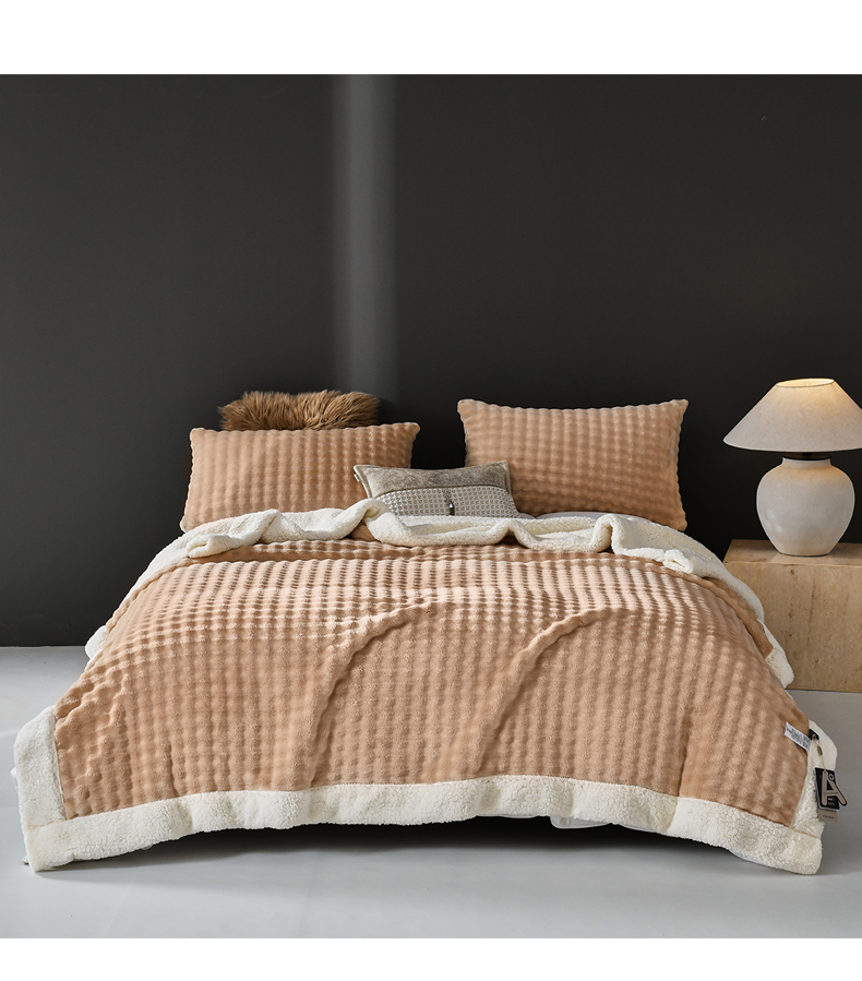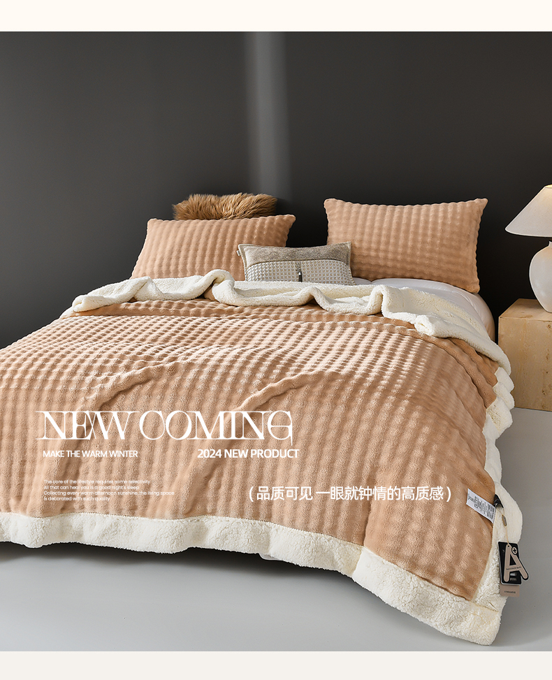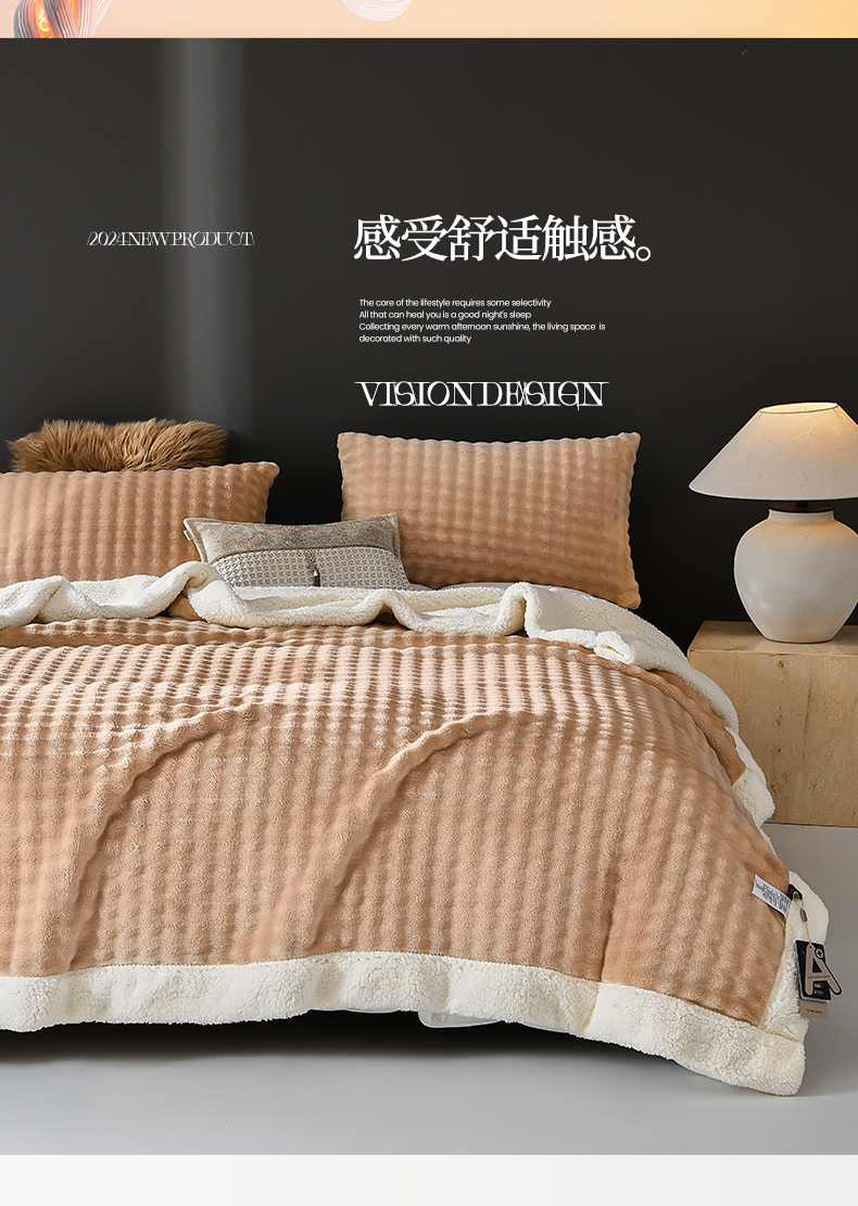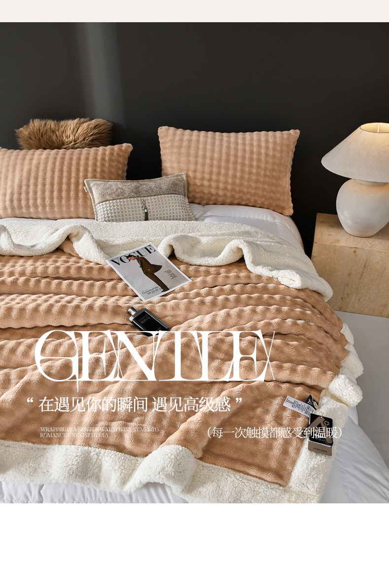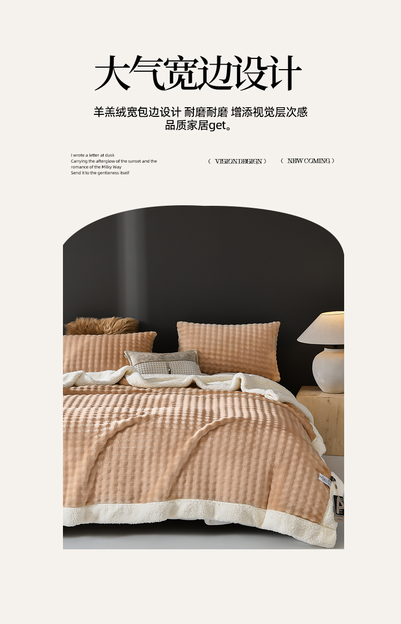 网客家纺 2024新款雕花绒泡泡绒羊羔绒毛毯 燕麦咖