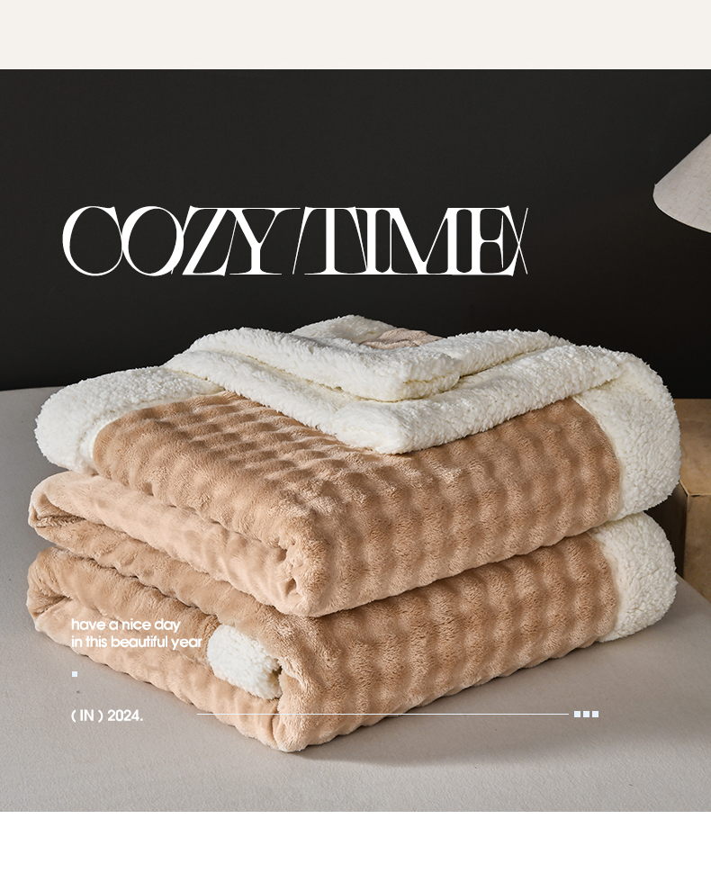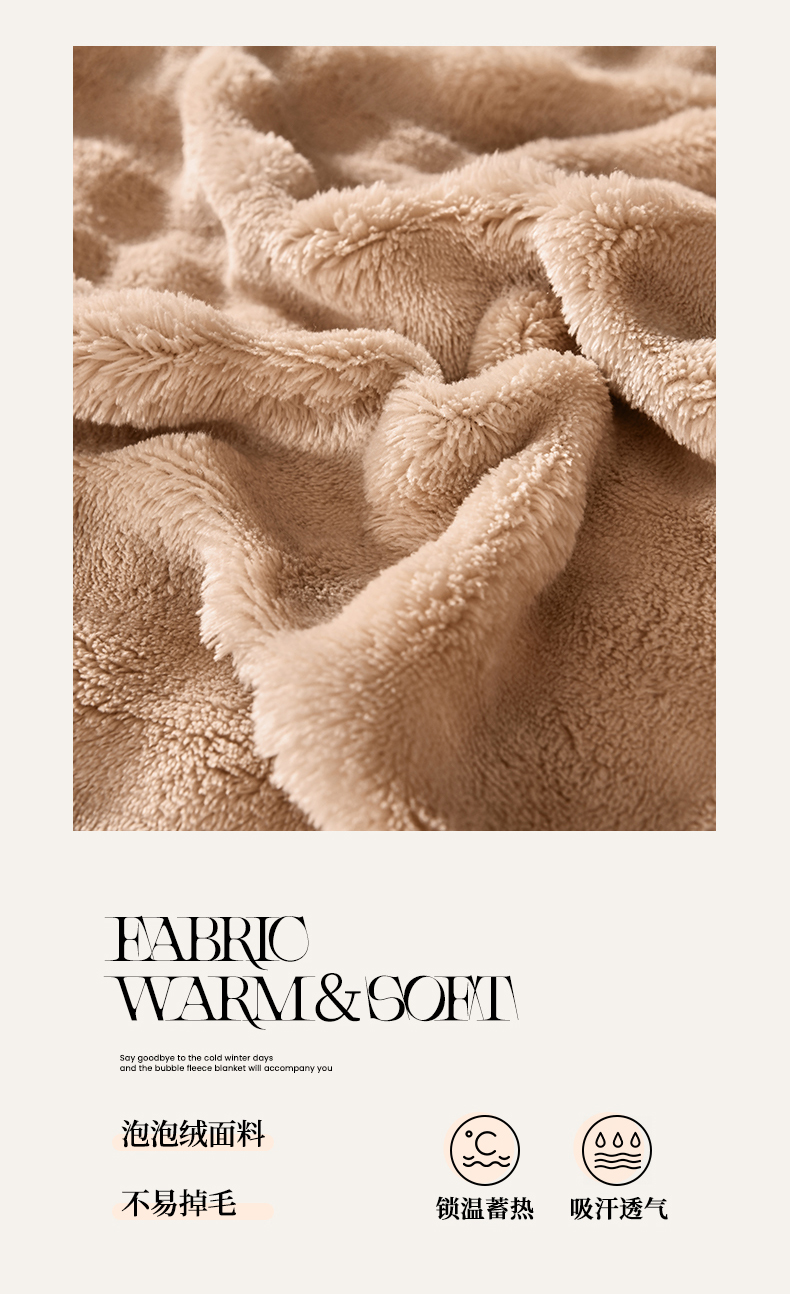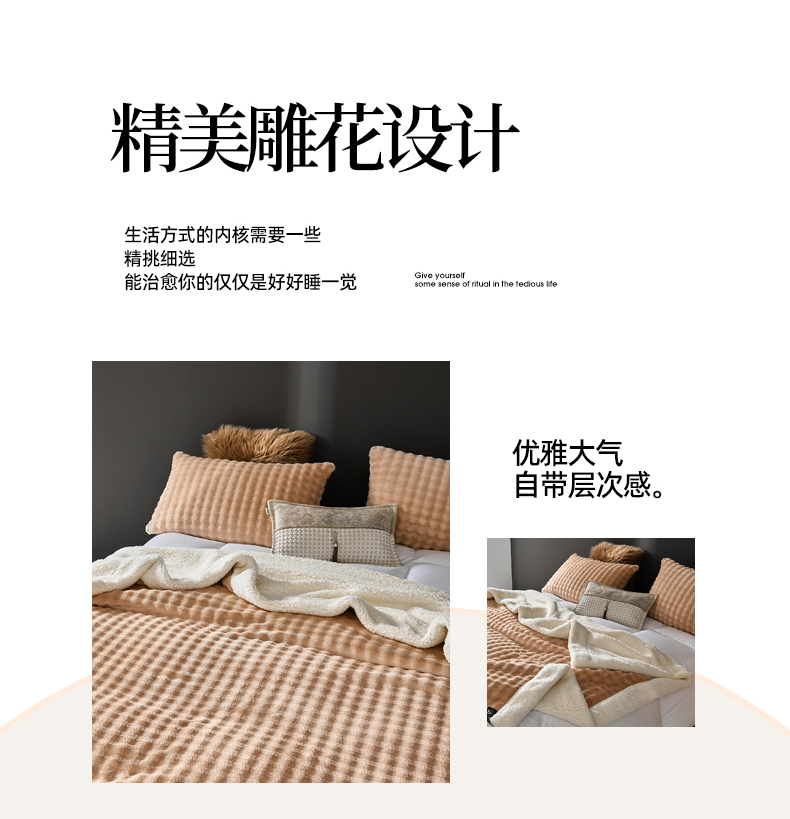 商品名称:网客家纺 2024新款雕花绒泡泡绒羊羔绒毛毯 燕麦咖