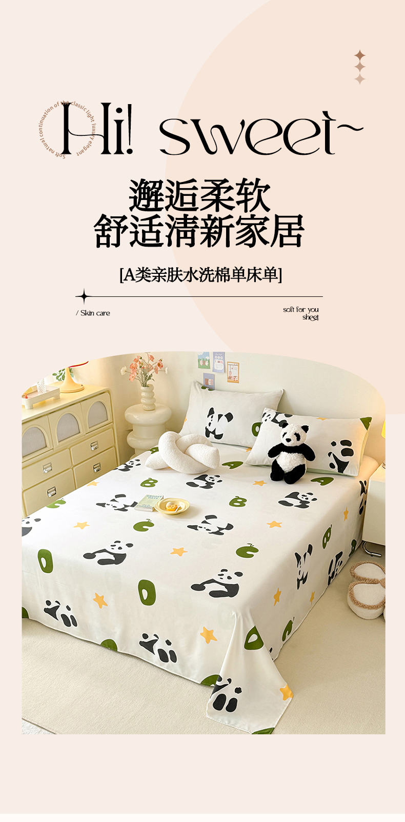商品名称:妖妖家纺 2024新款超柔软糯水洗云朵棉印花单床单 国宝梦境