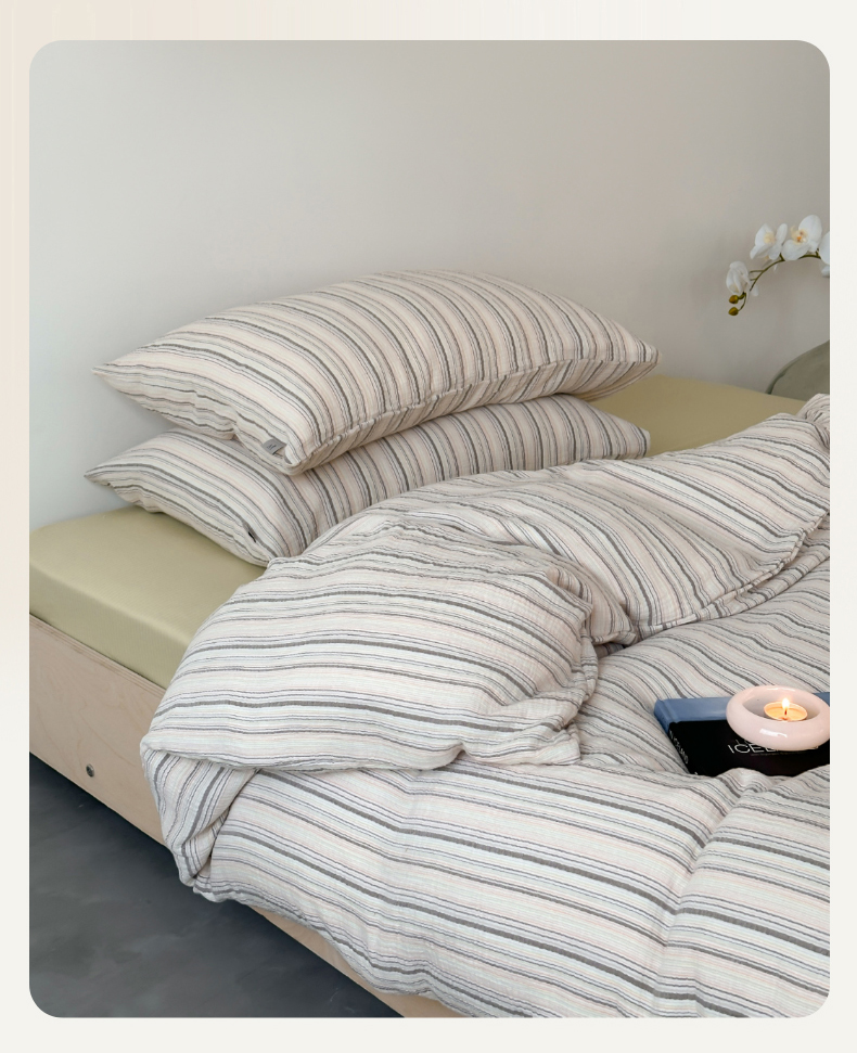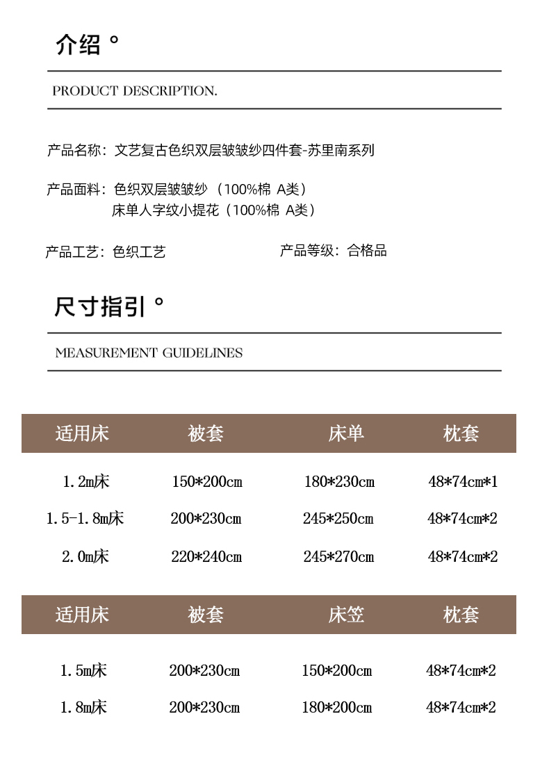 当前位置: 91家纺网 > 商品网购 > 床品套件 > 四件套 > 全棉普通四件套 > (总)玛奇朵 2024新款文艺复古色织双层皱皱纱-苏里南系列四件套