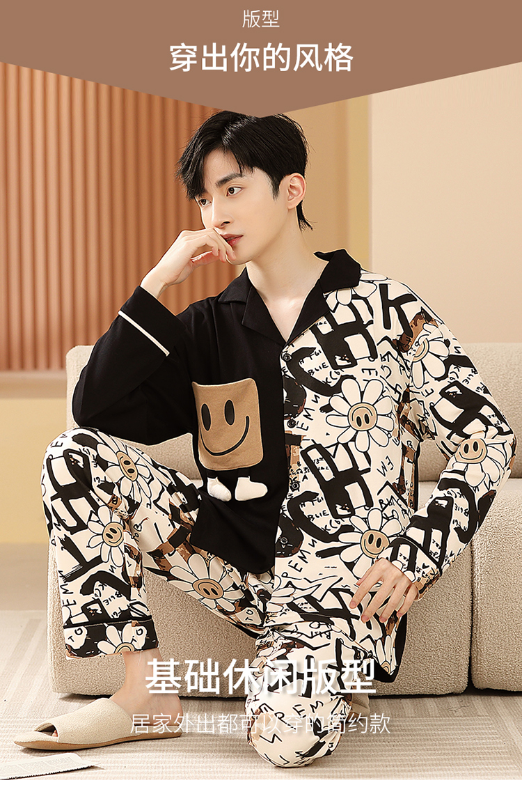 商品名称:洛兰沙 春秋季纯棉开衫长袖可外穿家居服睡衣 640男