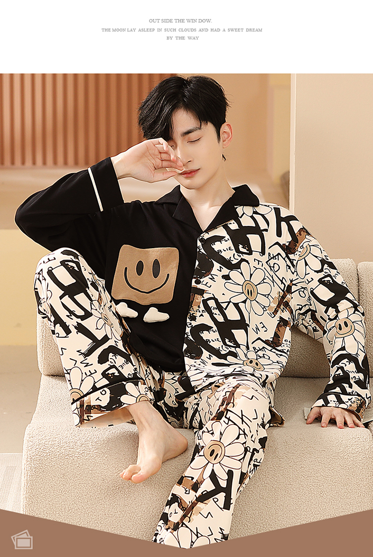 洛兰沙 春秋季纯棉开衫长袖可外穿家居服睡衣 640男