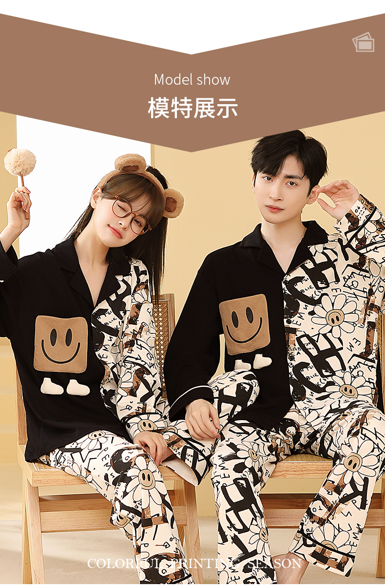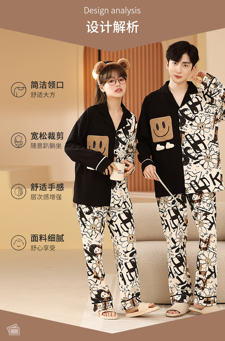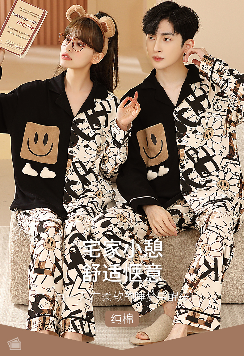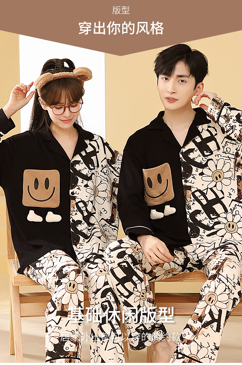 洛兰沙 春秋季纯棉开衫长袖可外穿家居服情侣套装 640女
