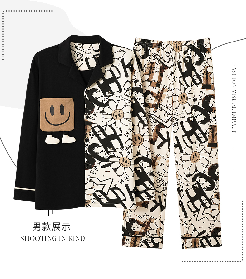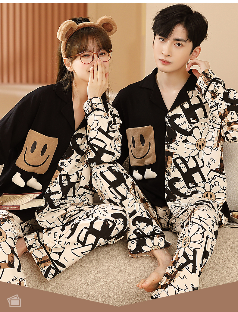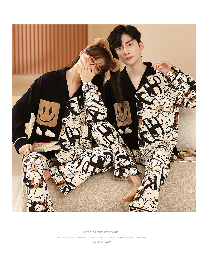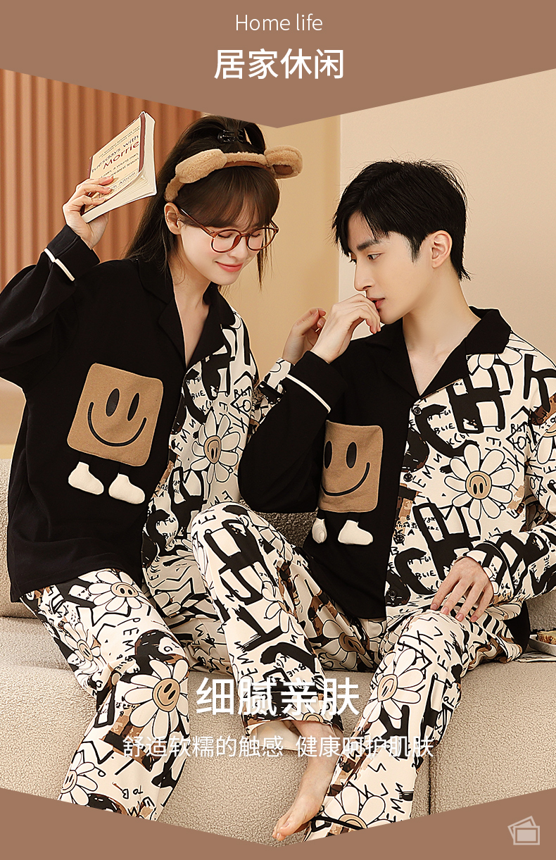 洛兰沙 春秋季纯棉开衫长袖可外穿家居服情侣套装 640女
