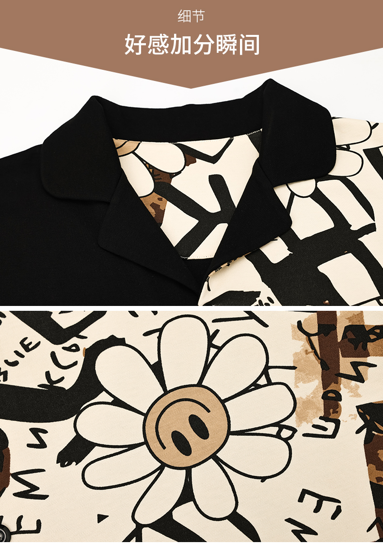 商品名称:洛兰沙 春秋季纯棉开衫长袖可外穿家居服情侣套装 640女
