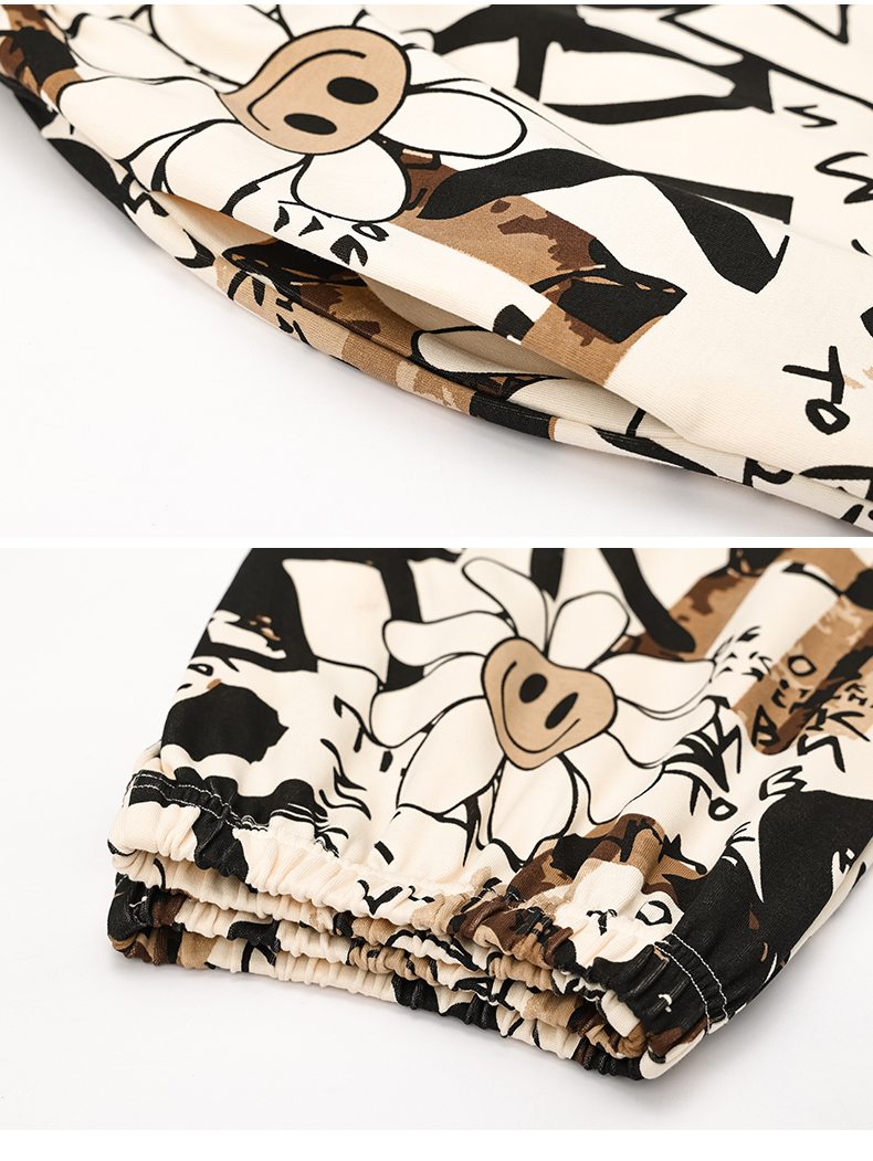 (总)洛兰沙家居馆 2025新款情侣款全棉双层男女家居服简约睡衣套装长袖长裤格子简约风舒适款,男士莫奈花园长袖长裤套装-卡其色,女士莫奈花园长袖长裤套装-卡其色