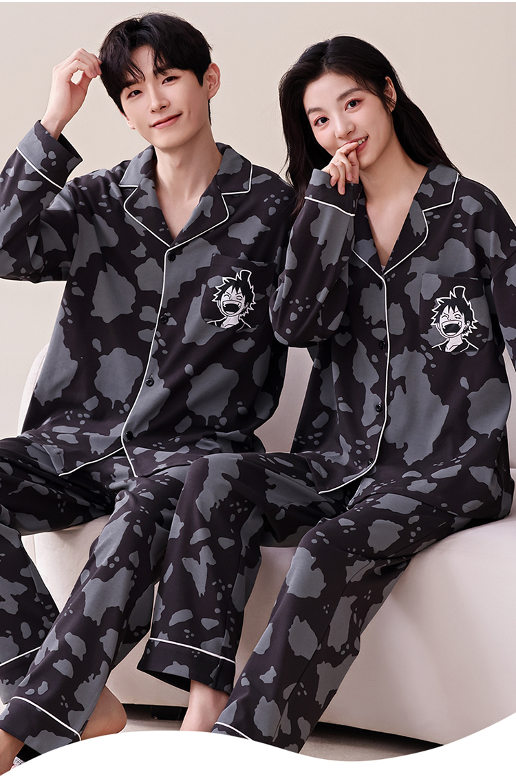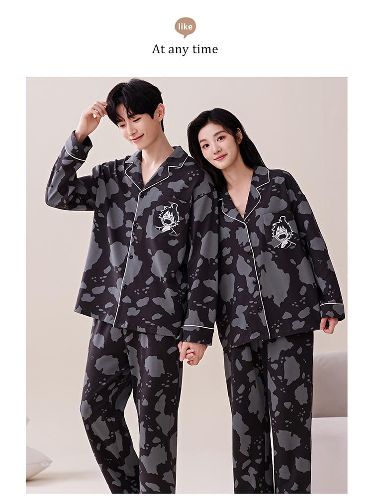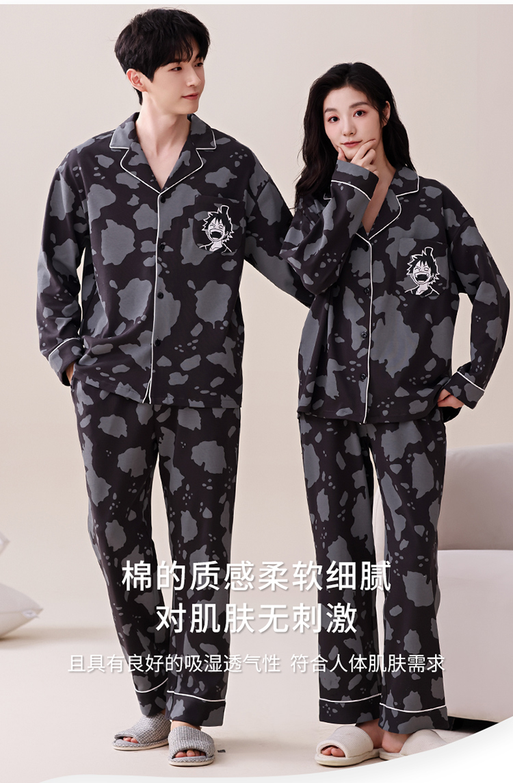 洛兰沙 春秋季纯棉开衫长袖可外穿家居服情侣套装 678男