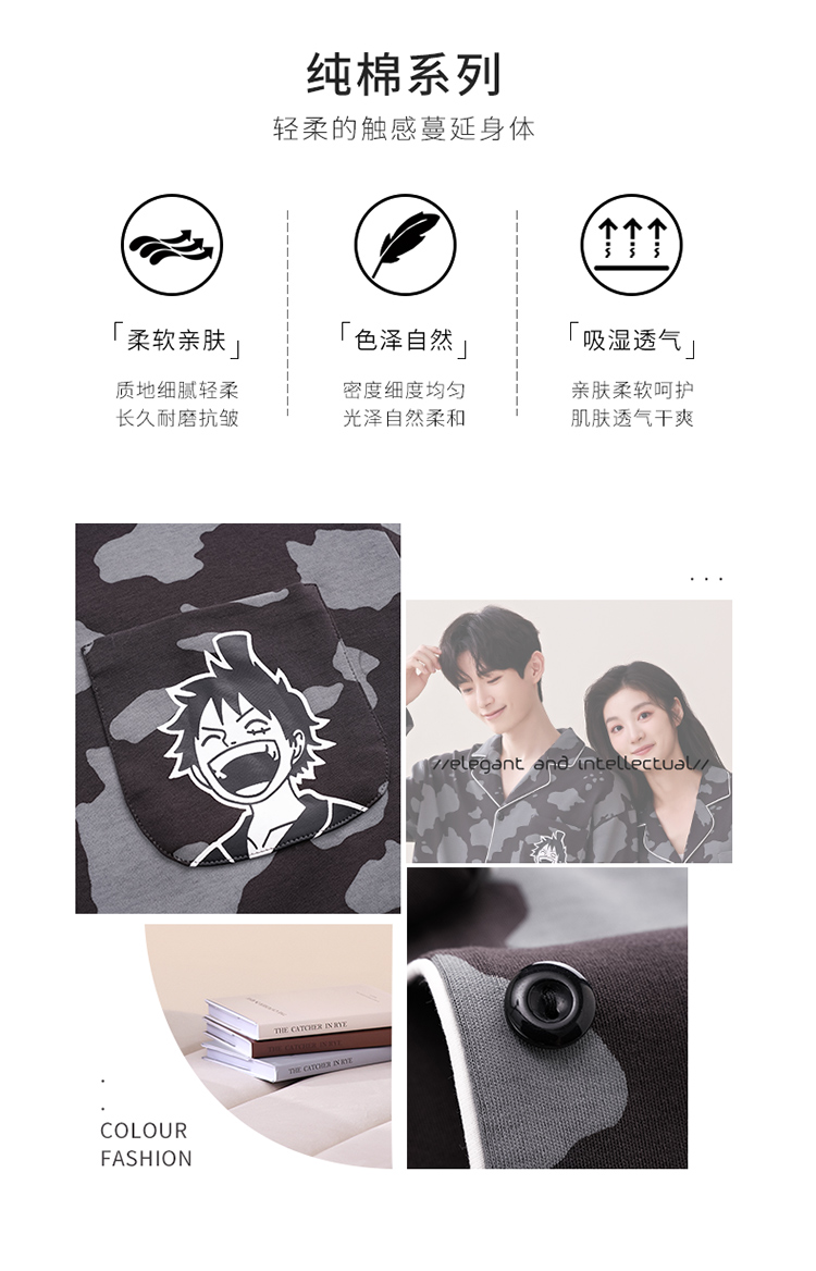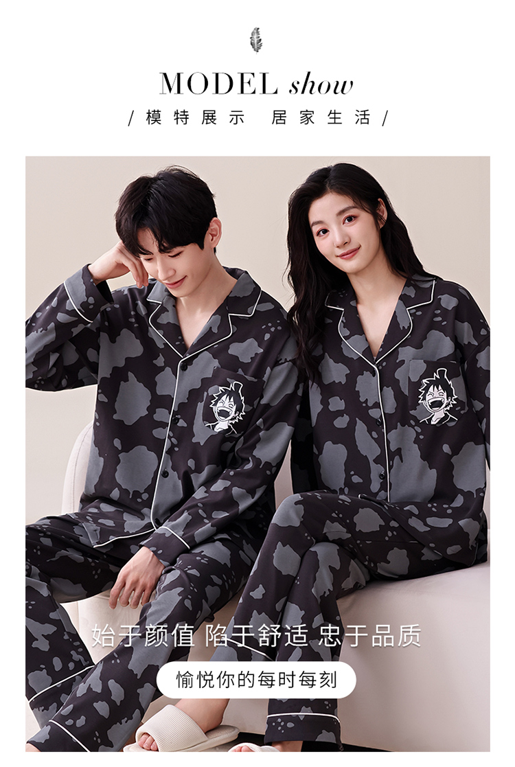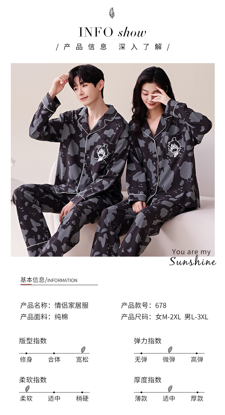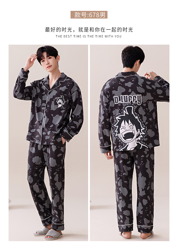商品名称:洛兰沙 春秋季纯棉开衫长袖可外穿家居服情侣套装 678男