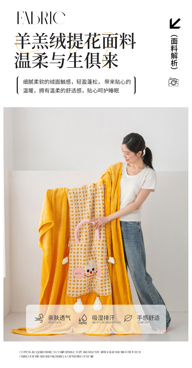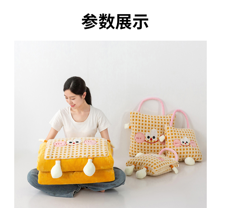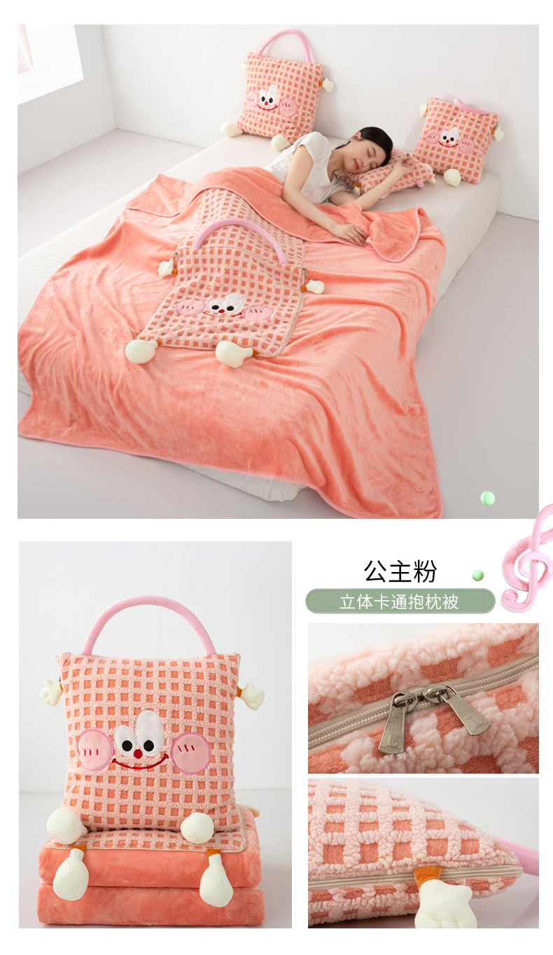 (总)雷娜家居 2025新款色织手提款小兔子系列抱枕被,大耳朵兔粉,大耳朵兔黄
