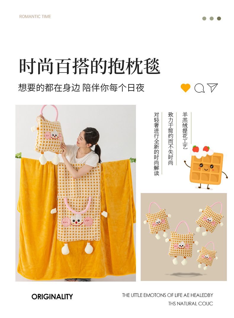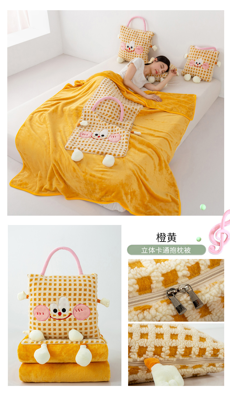 (总)雷娜家居 2025款加厚牛奶绒Happy Toast贴布绣抱枕被,藏青,橙橘,豆绿,海蓝,湖绿,暖玉色,深灰,温柔紫