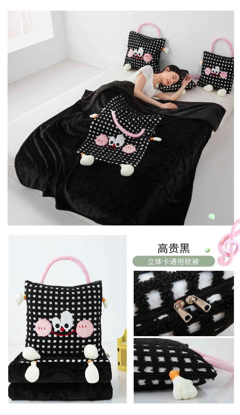 (总)雷娜家居 特色手提款帆布面料卡通绣花抱枕被,手提大眼萌,手提小怪鱼,熊猫艾草绿