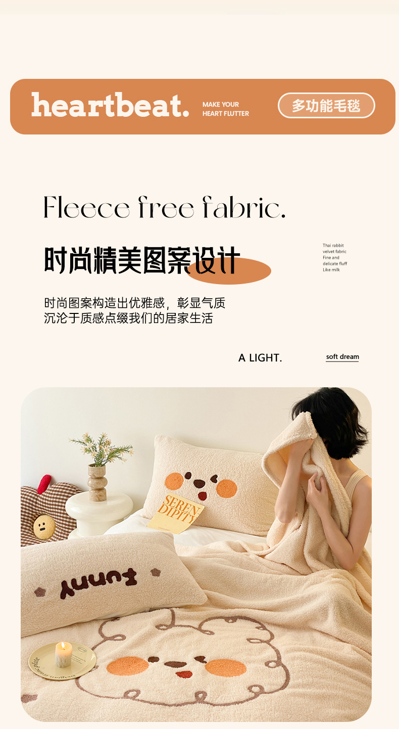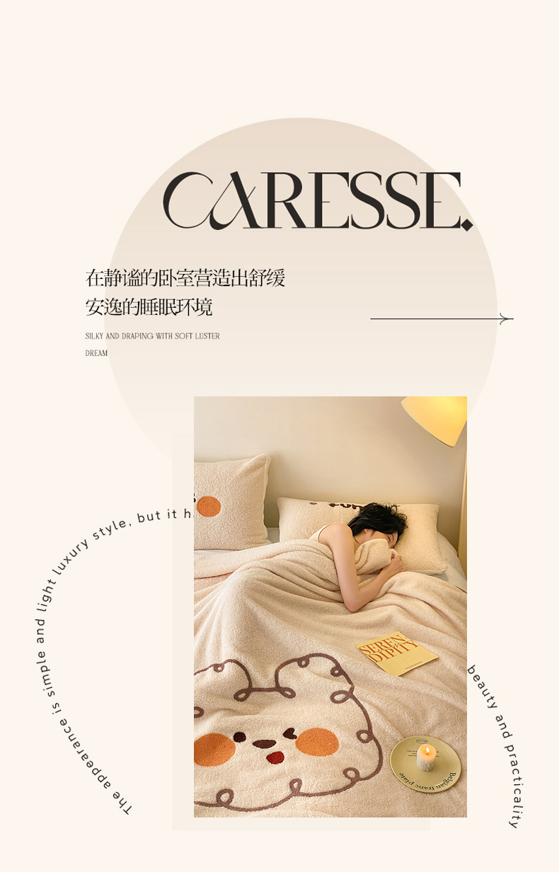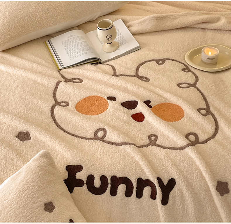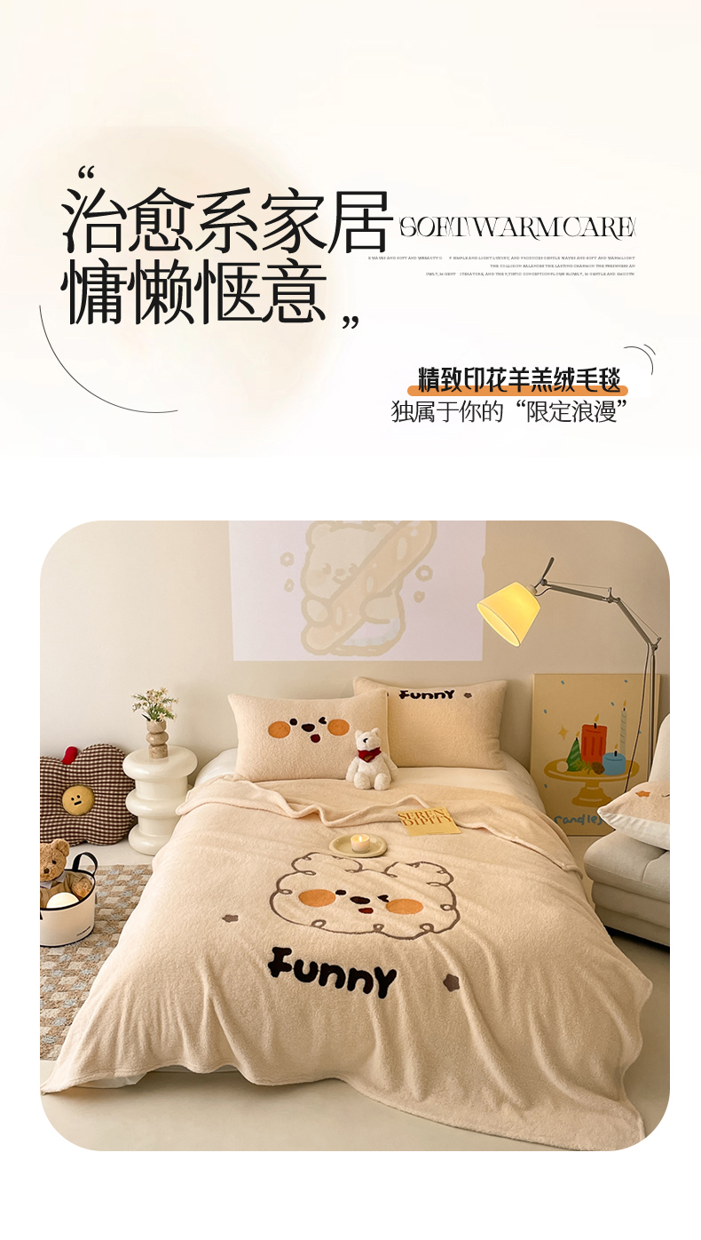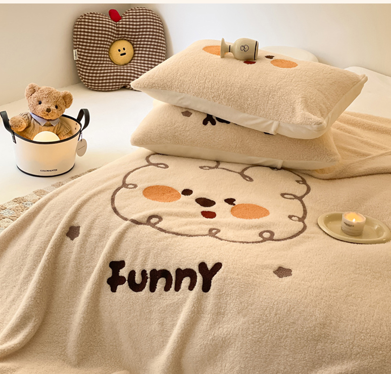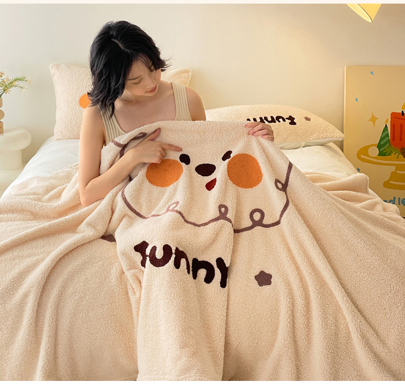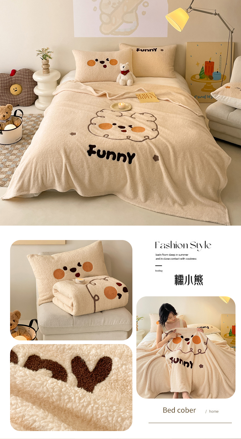 川悦生活 2024新款双面高克重雪花绒卡通羊羔绒泰迪绒毯子毛毯 毛毯糯小熊