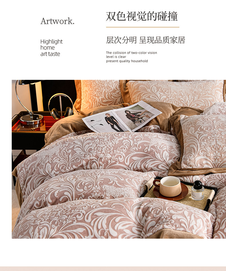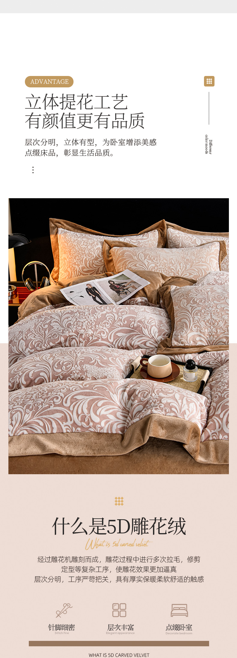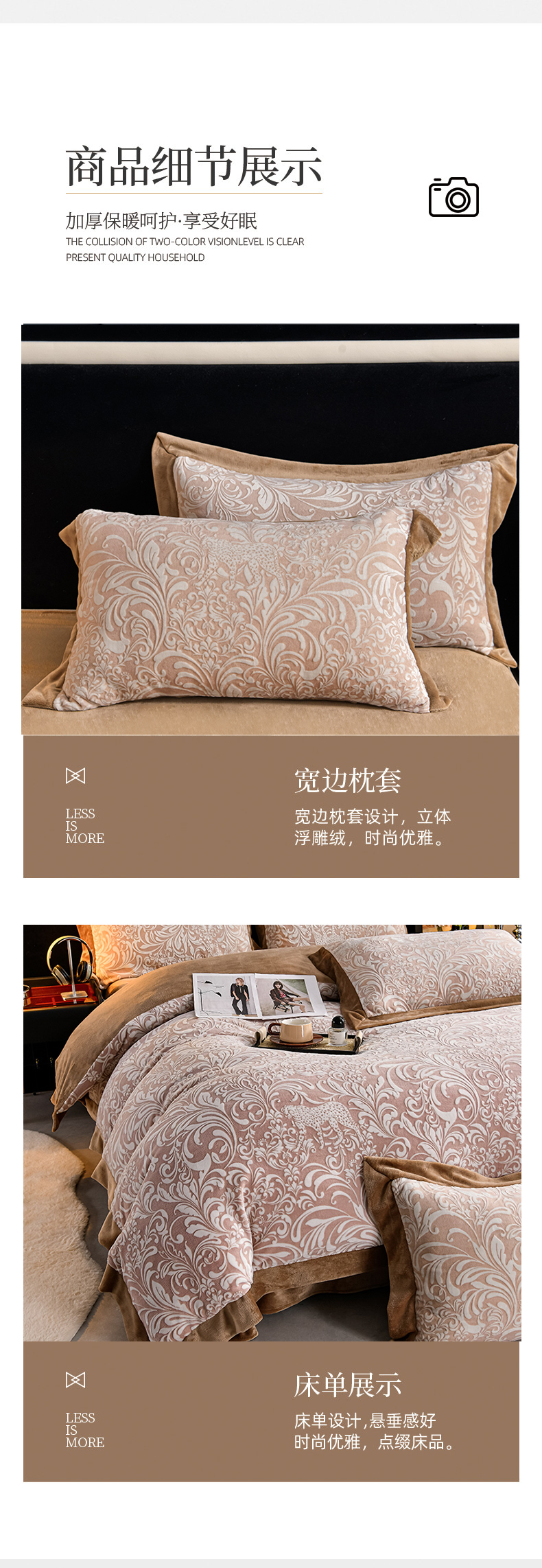 商品名称:馨梦缘 2025新款宽边5D雕花绒牛奶绒四件套 西雅图-咖