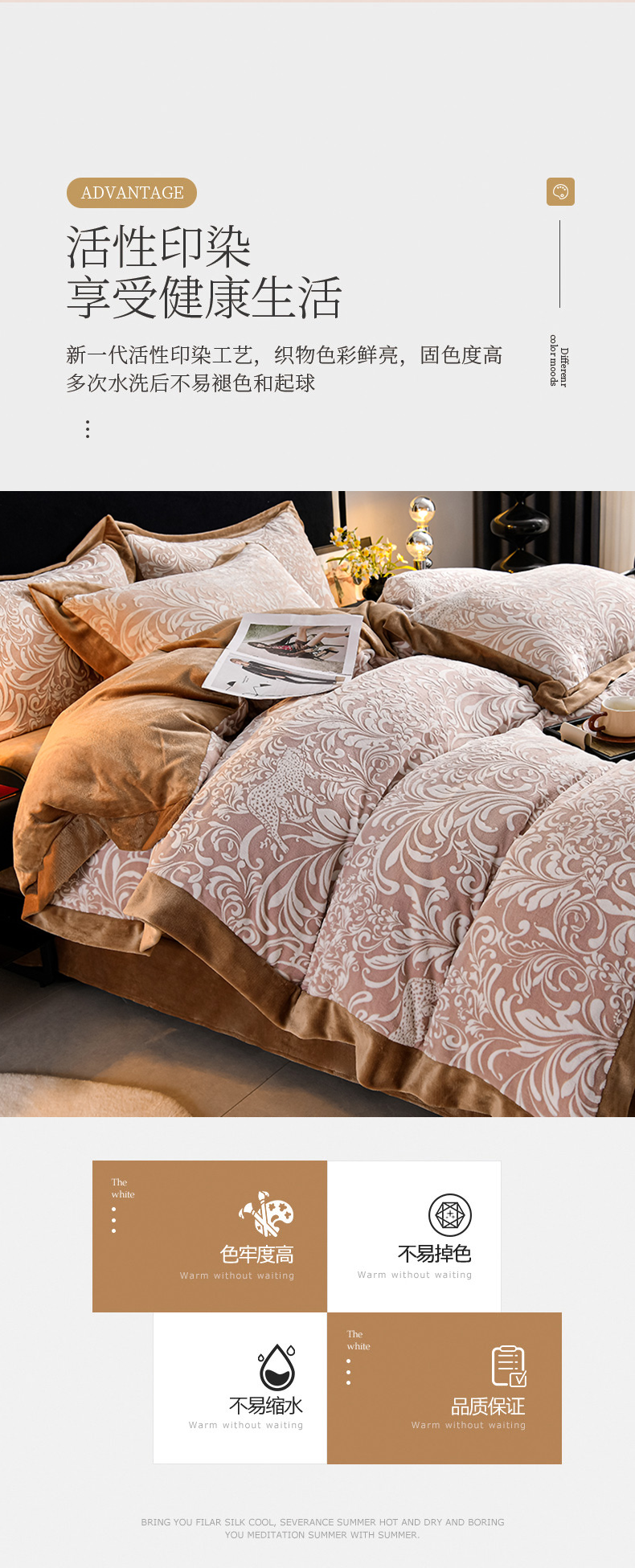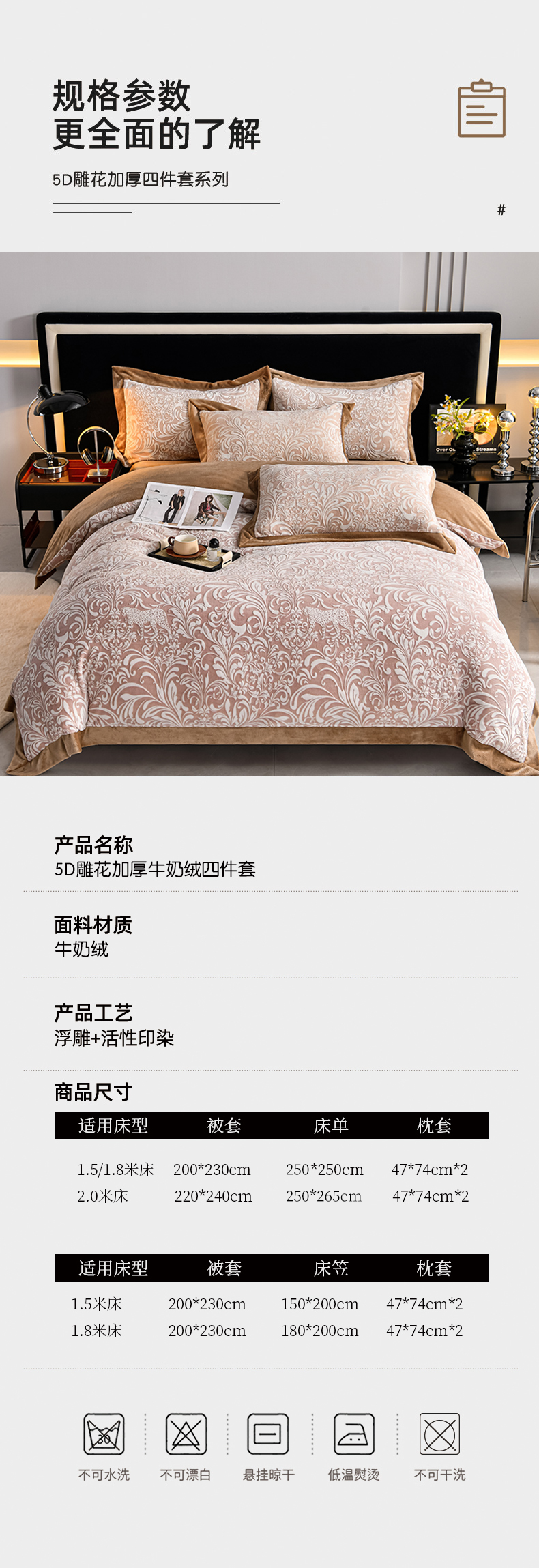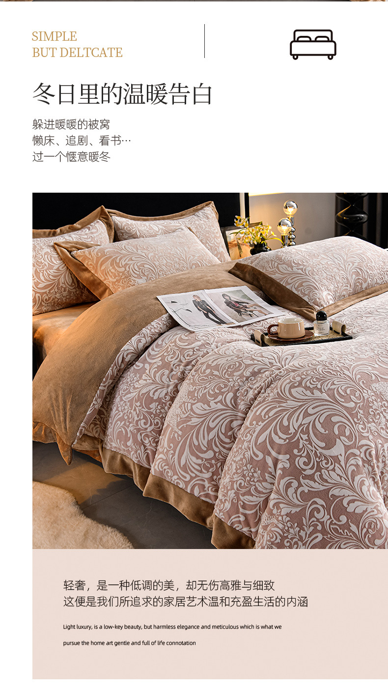商品名称:馨梦缘 2025新款宽边5D雕花绒牛奶绒四件套 西雅图-咖