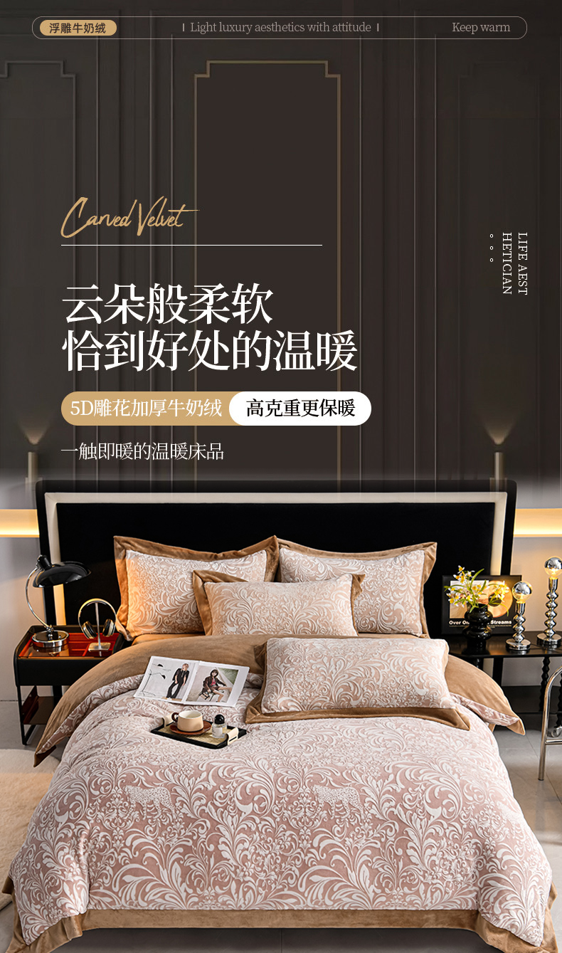 (总)馨梦缘 2025新款宽边5D雕花绒牛奶绒四件套,繁花-粉,繁花-咖,繁花-蓝,西雅图-翡翠绿,西雅图-灰,西雅图-咖,西雅图-蓝