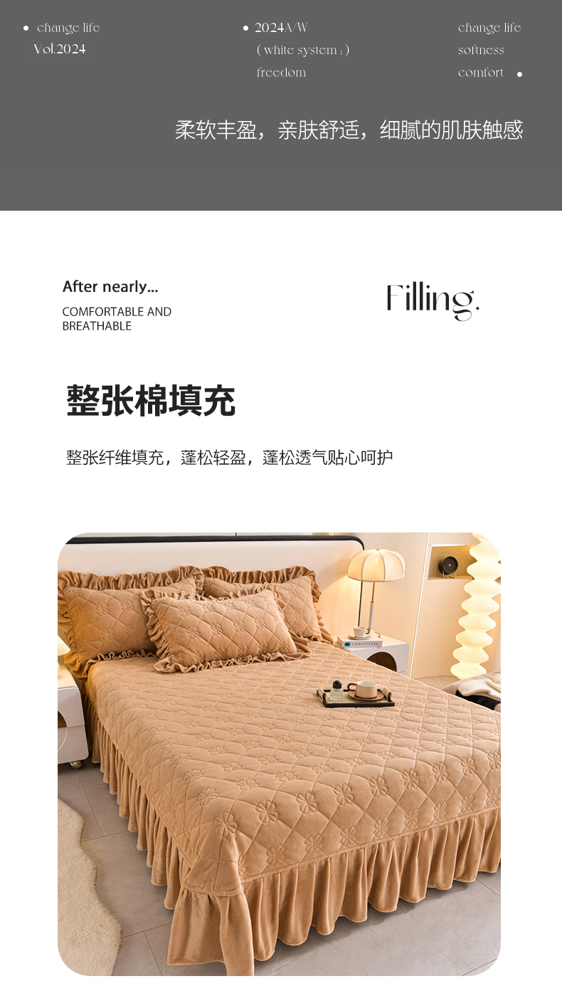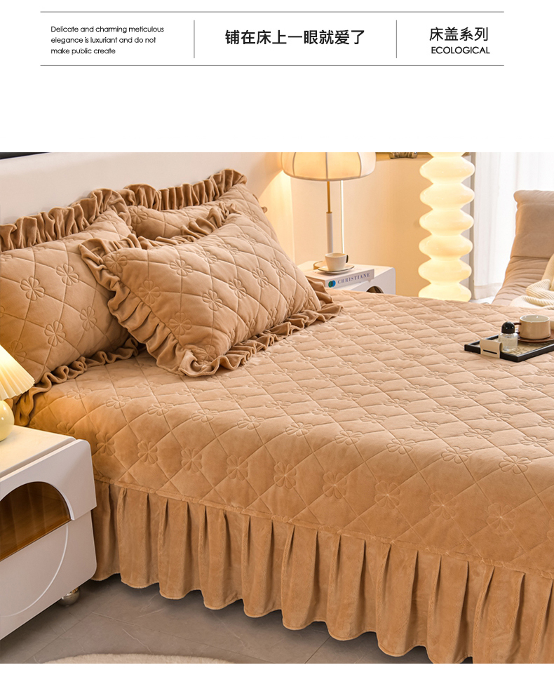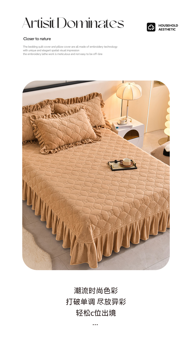 馨梦缘 2025直播爆款8.5斤牛奶绒四件套加厚保暖床裙金貂绒 静若繁花 粉,静若繁花 粉