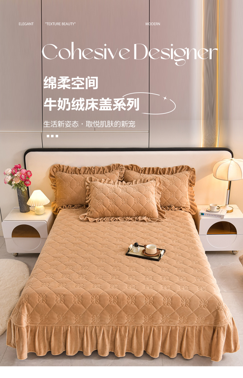 馨梦缘 2025新款亲肤舒适纯色高克重牛奶绒单床盖 单床盖-驼
