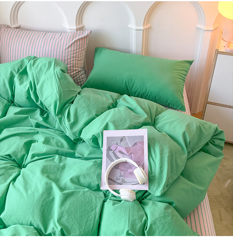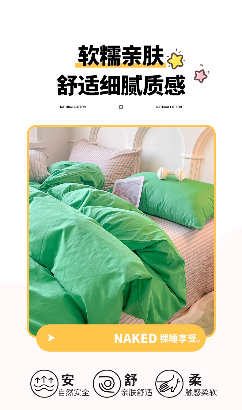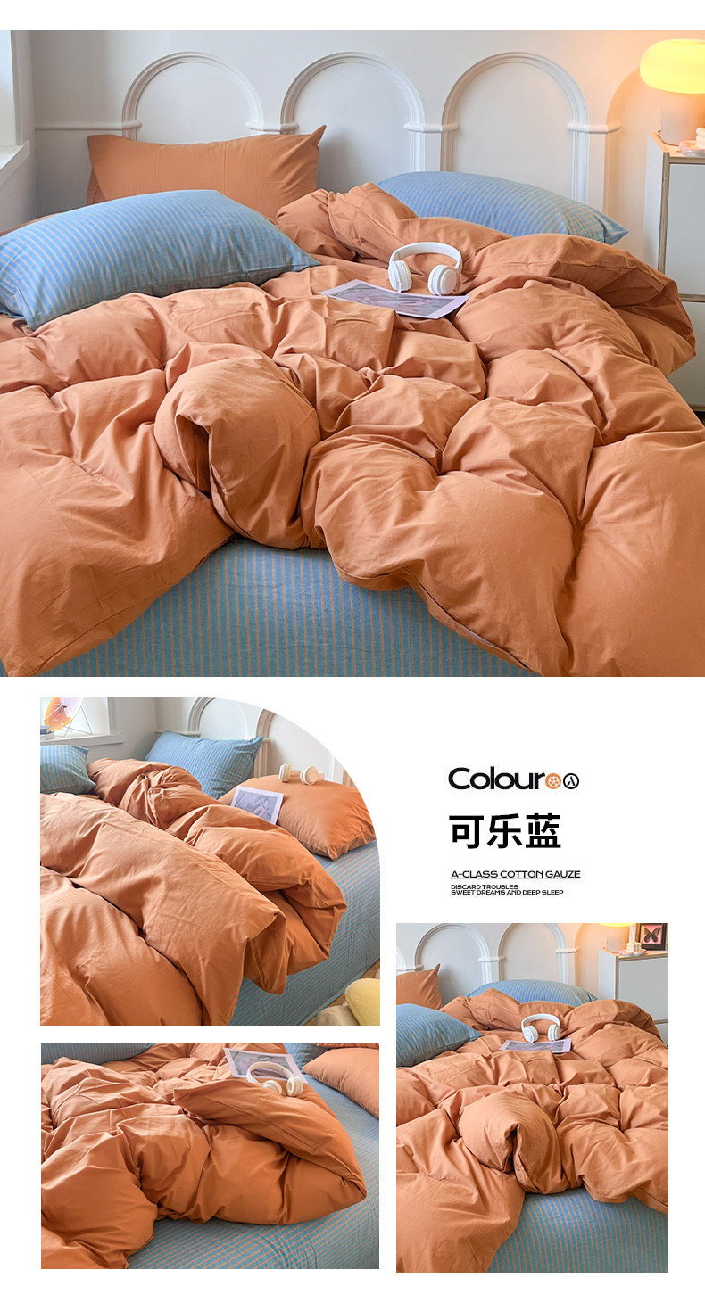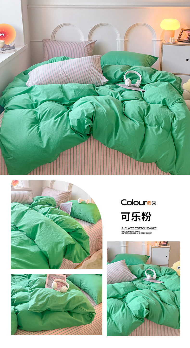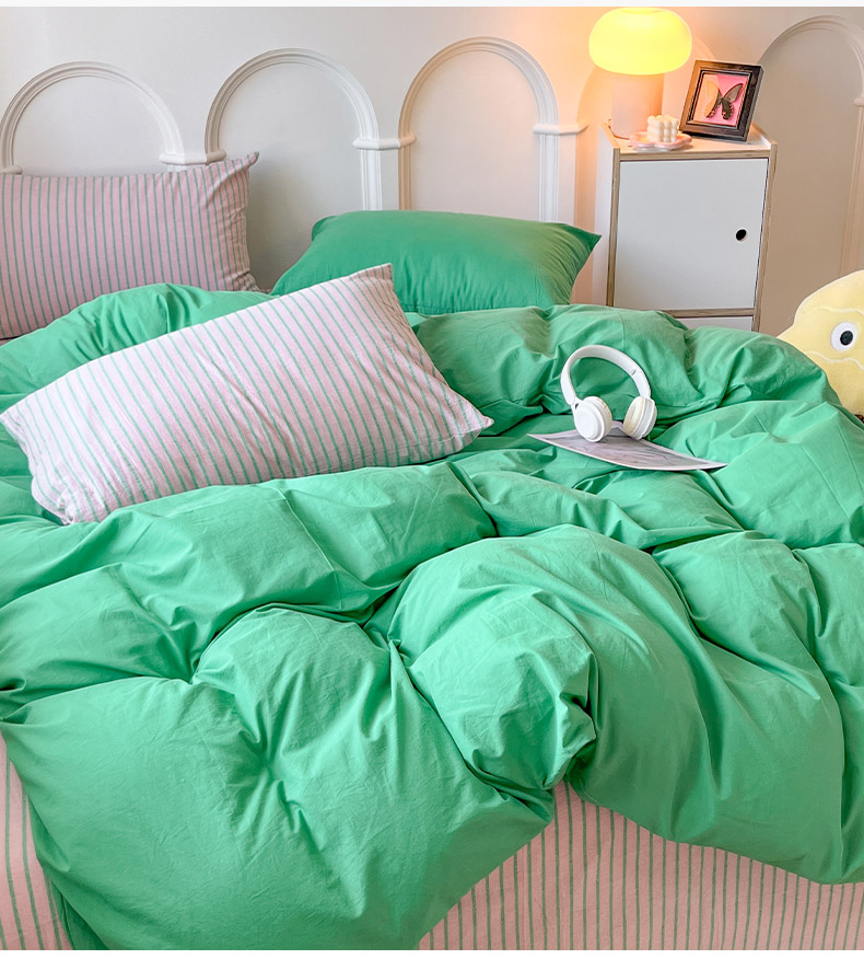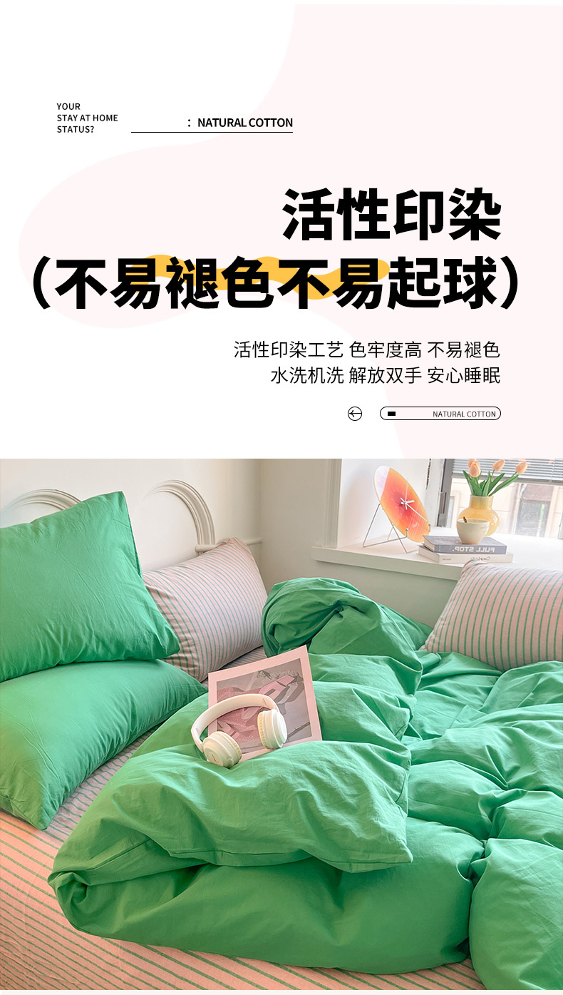 (总)千朵 2024新款ins风多巴胺撞色条纹全棉水洗棉四件套-可乐系列